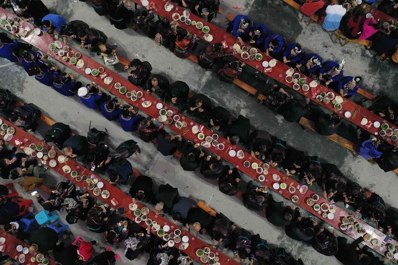 **柳州**:百家宴长桌摆起,一碗螺蛳粉后的热情更浓。