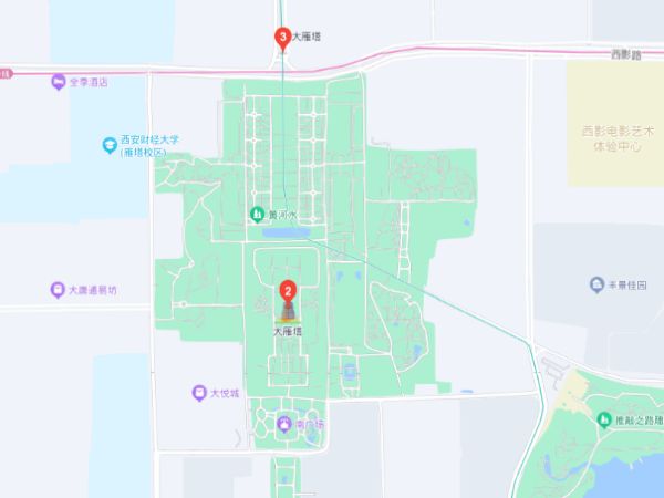 小雁塔位于大雁塔北面,距离西安火车站约7公里,也是一座古代佛教寺庙。小雁塔的内部装饰也十分精美,塔内的壁画和浮雕都是中国唐代艺术的代表作之一。小雁塔始建于唐朝贞观年间,为了存放高僧玄奘从印度取回的佛经而兴建,是中国现存最早的佛塔之一。