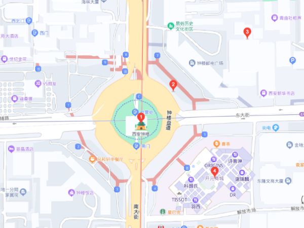钟楼距离西安火车站约3公里,是古代城市的标志性建筑之一,有漂亮的夜景。西安钟楼始建于明朝洪武十七年,是中国现存最古老、最完整的钟楼之一,也是古代钟楼建筑的代表之一。