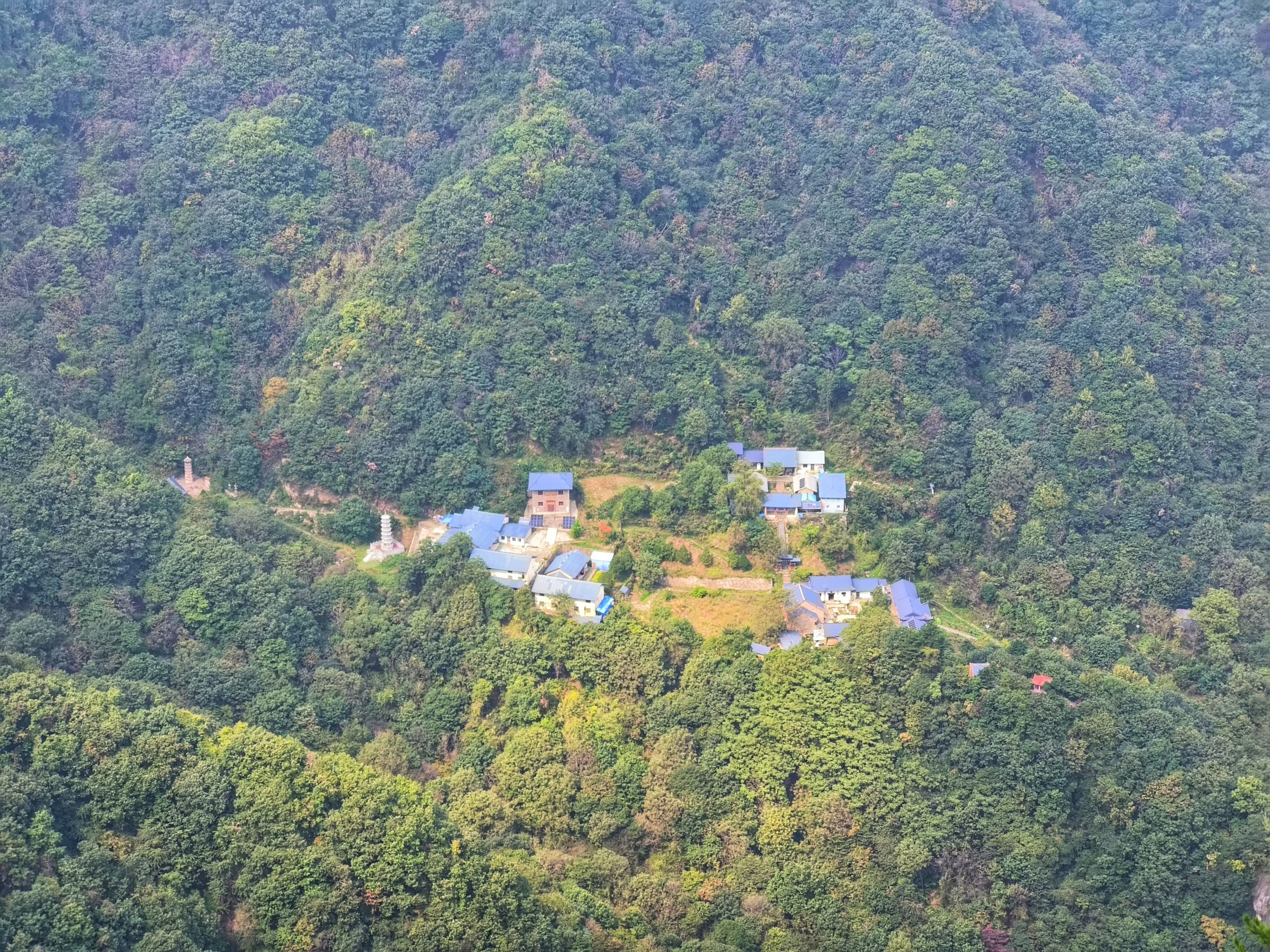岱顶穿越法华寺的路从岱顶右边小路下,有个西景池的路标,从这里一路陡坡下到西景池,该处有圆照法师的舍利塔。继续前行路过金蟾寺到达鹤场,这里集中有法华寺、感悟寺和万峰寺三座寺庙。这段路野猪比较多,也有板栗,不过不集中,可以不捡。