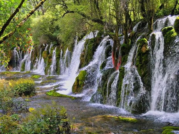 - 九寨沟风景区:位于阿坝藏族羌族自治州九寨沟县,有“九寨归来不看水”的美誉。这里的湖水五彩斑斓,湖泊、瀑布、雪山、森林相互交融,如梦幻仙境一般。