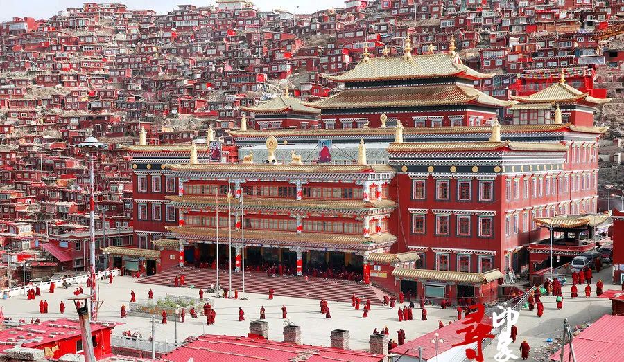 - 色达五明佛学院:世界上最大的藏传佛学院之一,红色的僧舍连绵不绝,漫山遍野,非常壮观。