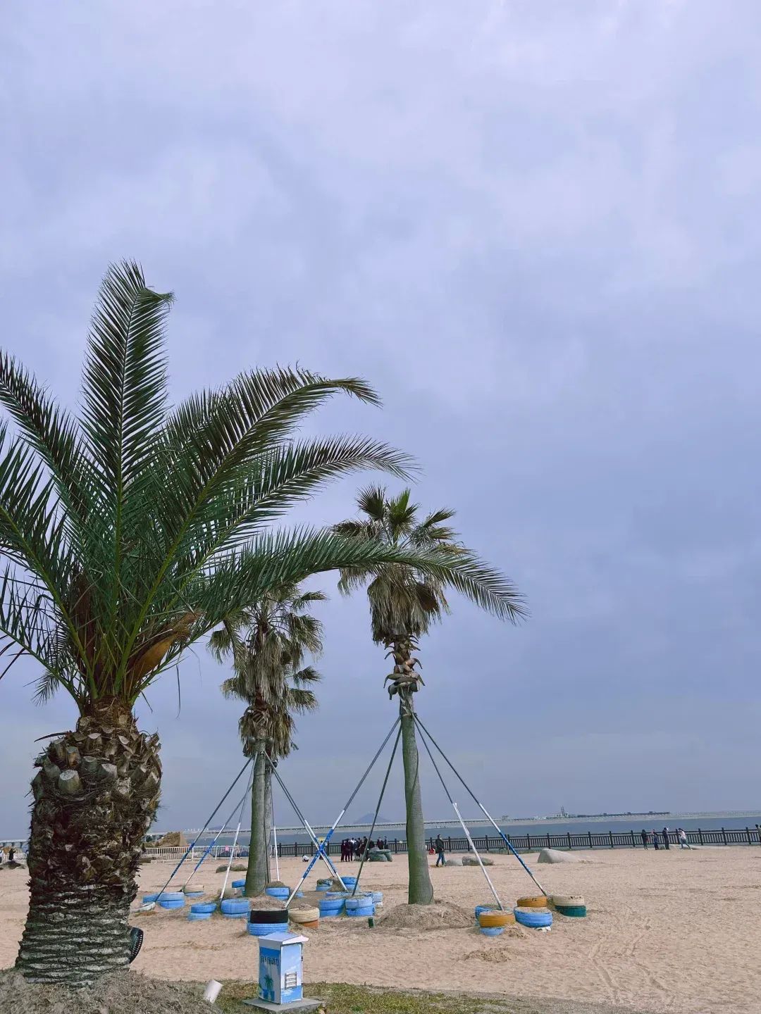 我们的第一站是金山城市沙滩。远远望去,金色的沙滩在阳光的照耀下闪烁着细碎的光芒,仿佛是大自然洒下的金色绸缎。走近些,海浪一波接着一波涌来,拍打着岸边的礁石,发出清脆悦耳的声响,仿佛在演奏着一首欢快的迎宾曲。