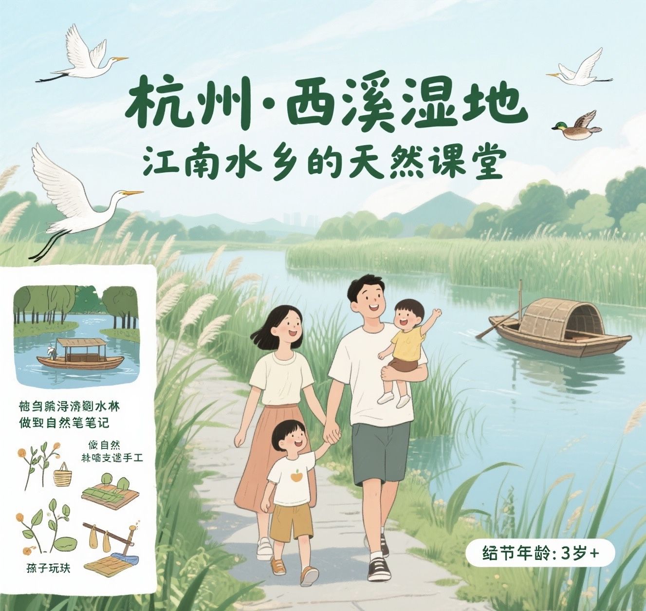 **推荐理由:** 江南水乡的天然课堂,乘摇橹船穿行芦苇荡,观察白鹭、野鸭等湿地生态。
