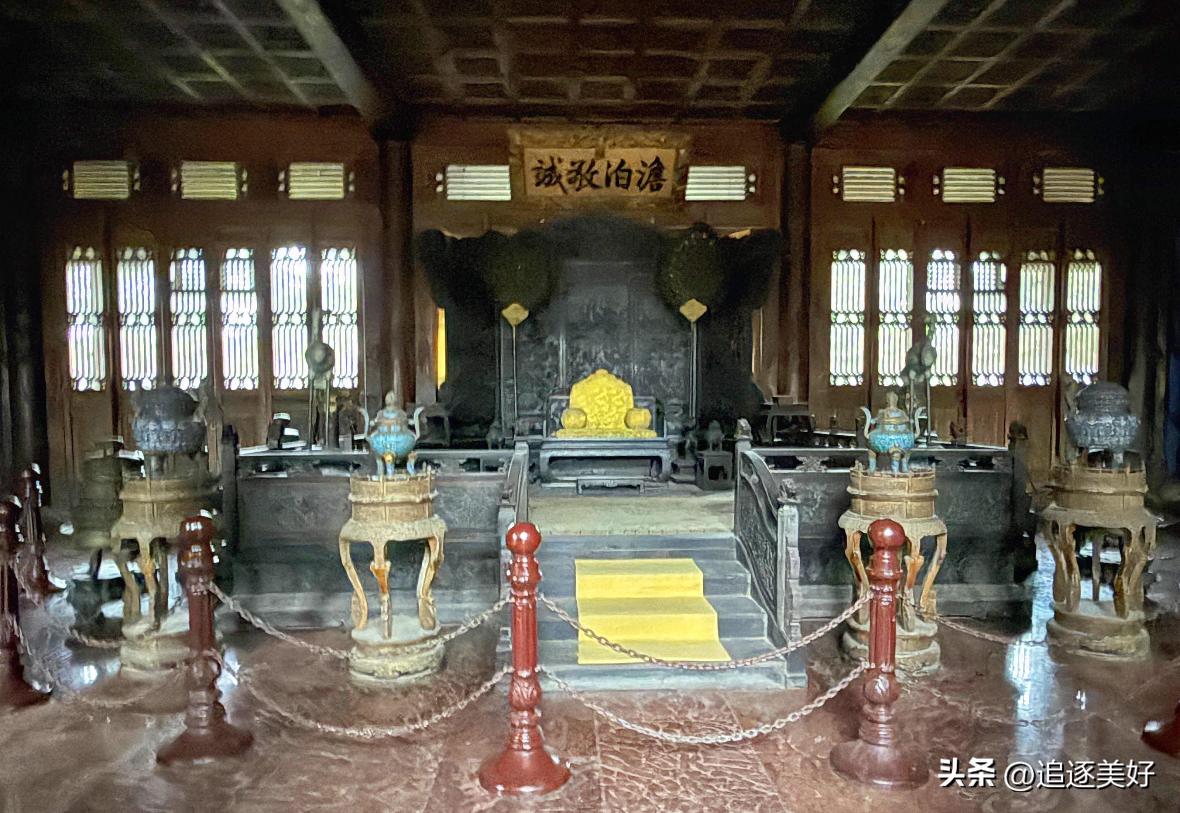 1、澹泊敬诚殿:宫殿区核心建筑,相当于紫禁城太和殿,是举行重大典礼、接见使臣之地。乾隆时用楠木改建,又称楠木殿,殿内陈设庄重,悬挂康熙御笔“澹泊敬诚”匾额 。