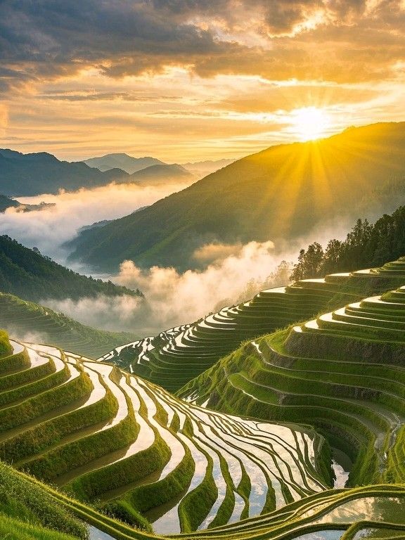 亮点就是层层叠叠的稻田像玻璃一样反光,春天灌水后特别好看,秋天金黄的稻田也很漂亮,人少能独享整片田,还免费开放。