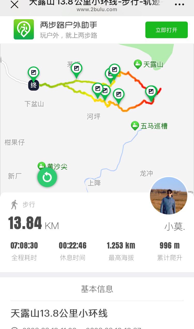 小环线距离为13.8千米,走得较快耗时6小时,起点和终点均在新兴县黄窝村村委会。建议顺时针走,防止下坡打滑