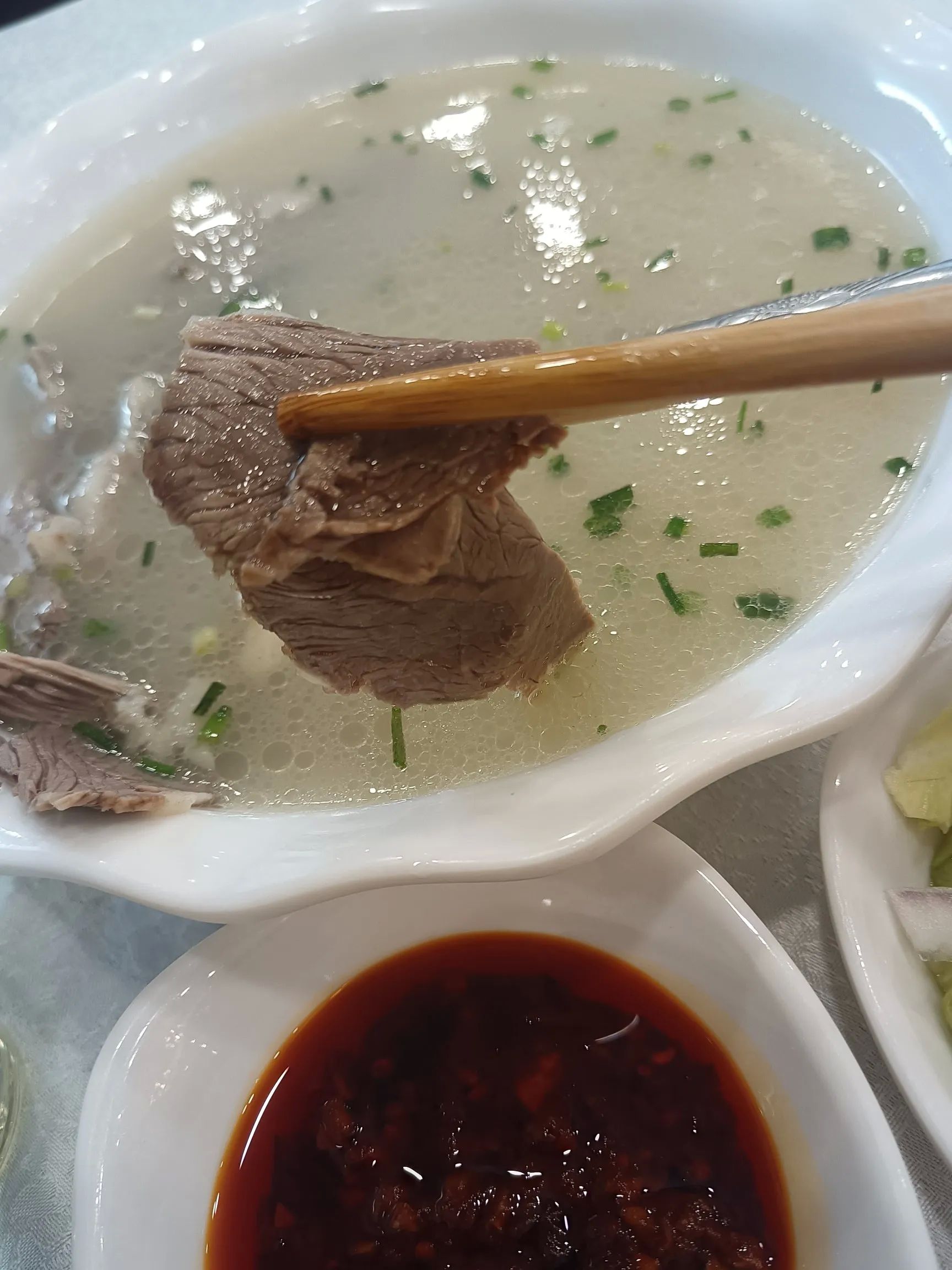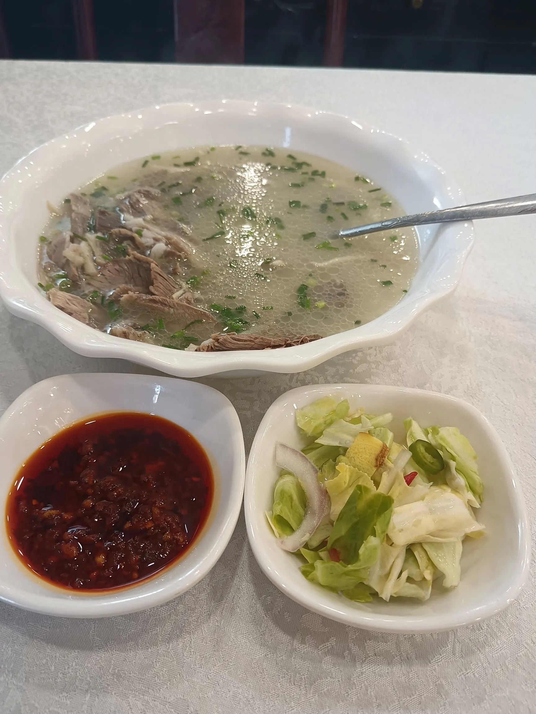 东吴羊汤,据说是隆昌最受欢迎的店。一份羊汤,三两肉,,一份羊肉包子。基础温饱配置。