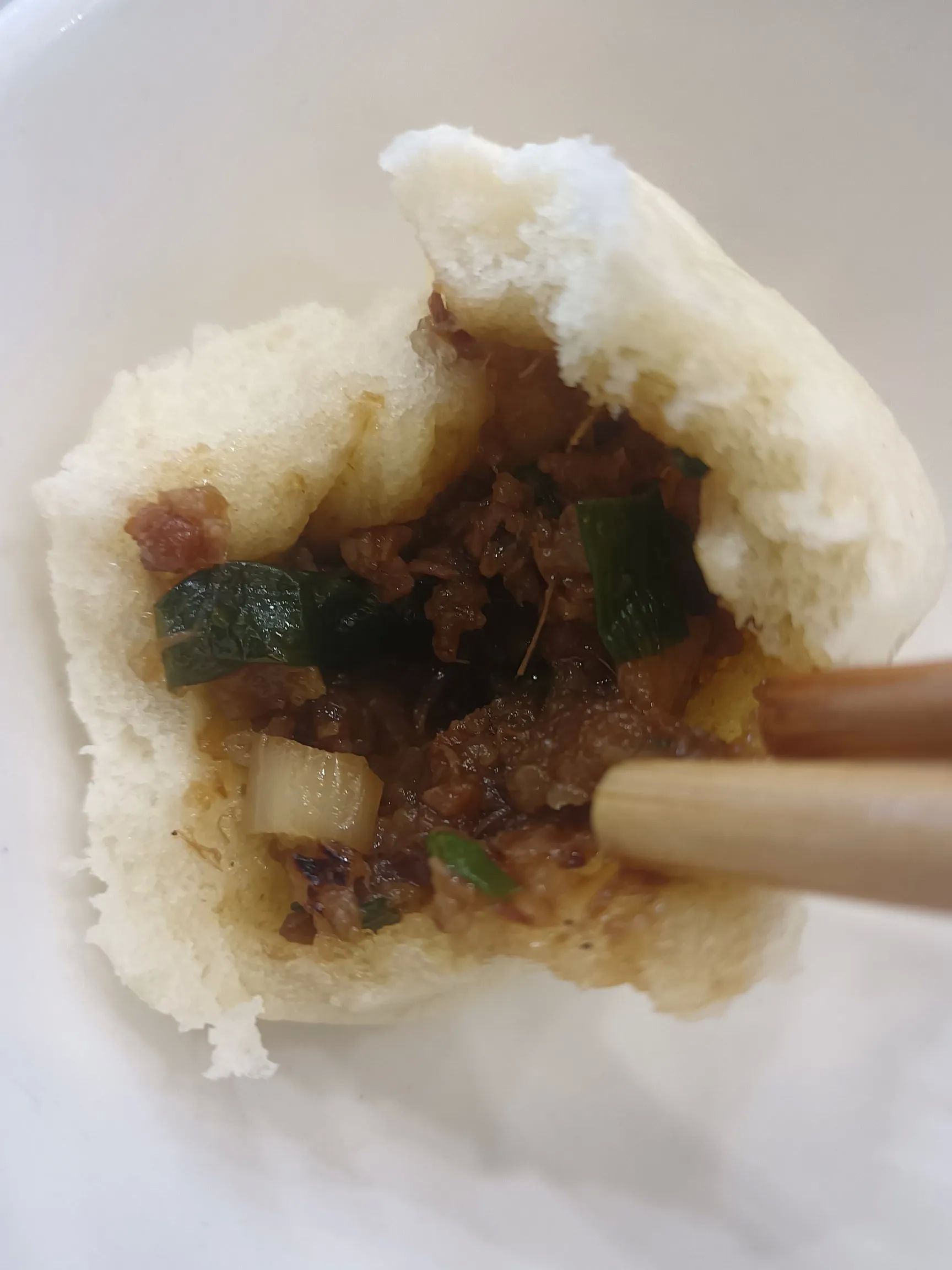 一盆羊肉上桌,着实把我惊呆,萝卜丝打底,羊肉切片,羊汤熬的颜色淡黄,略白,为了熬好这盆汤,确保口味纯正,熬制过程中始终没有加调料。从盆里盛一碗,加入盐少许。用筷子夹起一块,放入口中咀嚼,浓郁的肉香迅速充斥口腔,鲜美的羊汤随之冲入嘴中,混合羊肉在牙齿之间反复咀嚼,变得糜烂。羊肉包子不大,约一两酒盅大小。包子形状让我想起脑袋顶上的旋儿!包子肚一口下去,酱色的肉馅跃然而出,羊肉由于加了大量的糖,味道微甜,但是却增加了鲜香,配合松软的包子皮,将两种味道相互结合。充分享受到食物带来的满足。