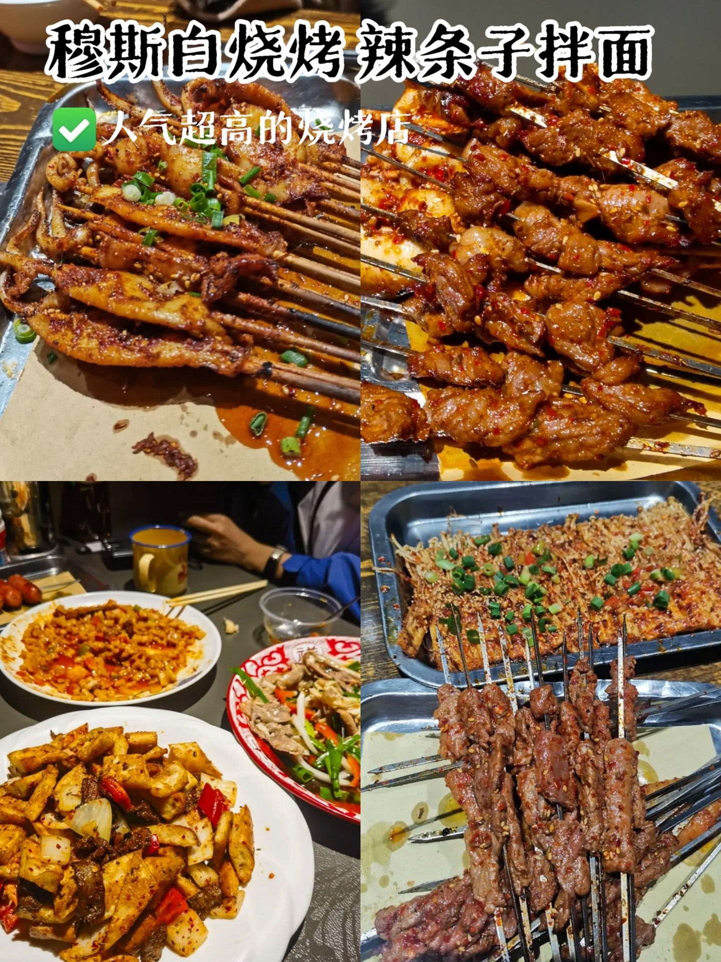 推荐:烤羊肉串、烤鱿鱼、金针菇、烤馕…