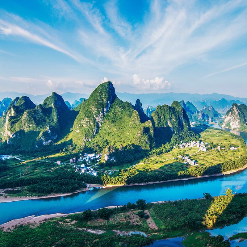 漓江,是桂林山水的代表。乘坐竹筏顺流而下,两岸奇峰罗列,绿水盈回,仿佛置身于一幅流动的山水画卷之中。20元人民币背面的风景就取景于此,当你亲眼目睹这如诗如画的美景时,定会被大自然的鬼斧神工所震撼。