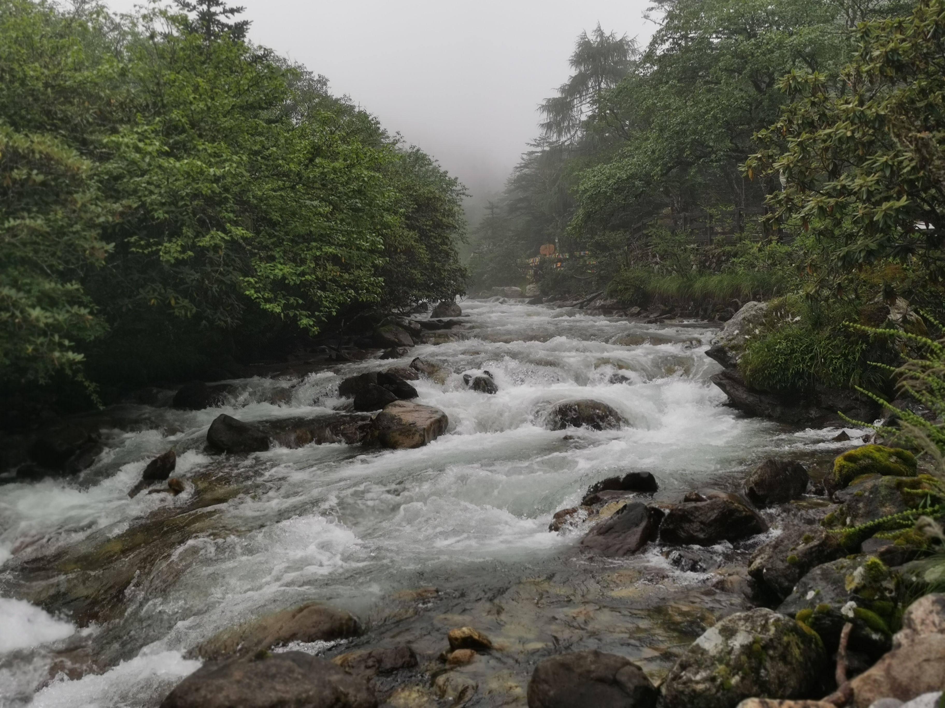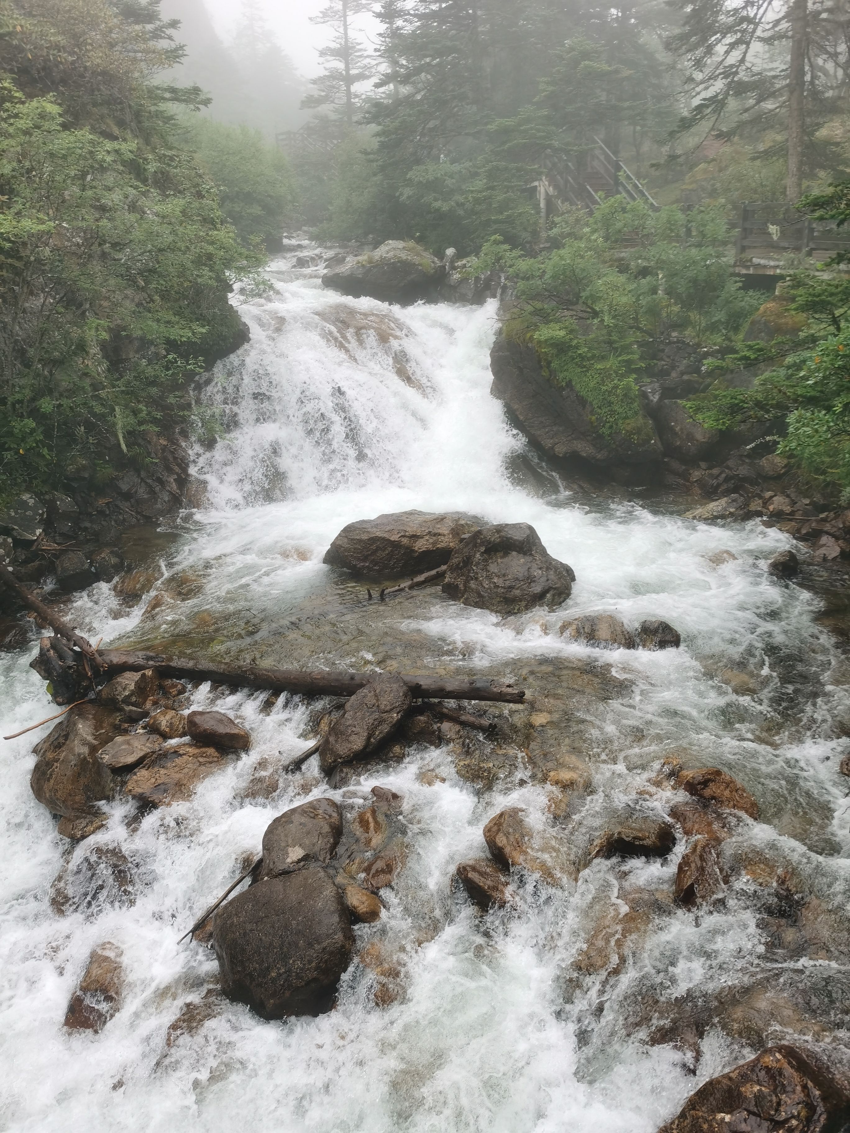 此次木格措之旅,虽未得晴朗天气的眷顾,却也别有一番韵味。在游览完野人海与溜溜山后,我走进溜溜山的牧人家中,品尝了一杯热气腾腾的酥油茶,暖意瞬间驱散了身上的寒意。随后,我徒步下山,穿梭于原始森林之间,一路与“三叠瀑”相伴,又穿过了风景如画的杜鹃峡。杜鹃峡内瀑布众多,水流一级一级奔腾而下,激起的浪花洁白剔透,比皑皑白雪更显纯净,宛如一幅灵动的山水画卷。