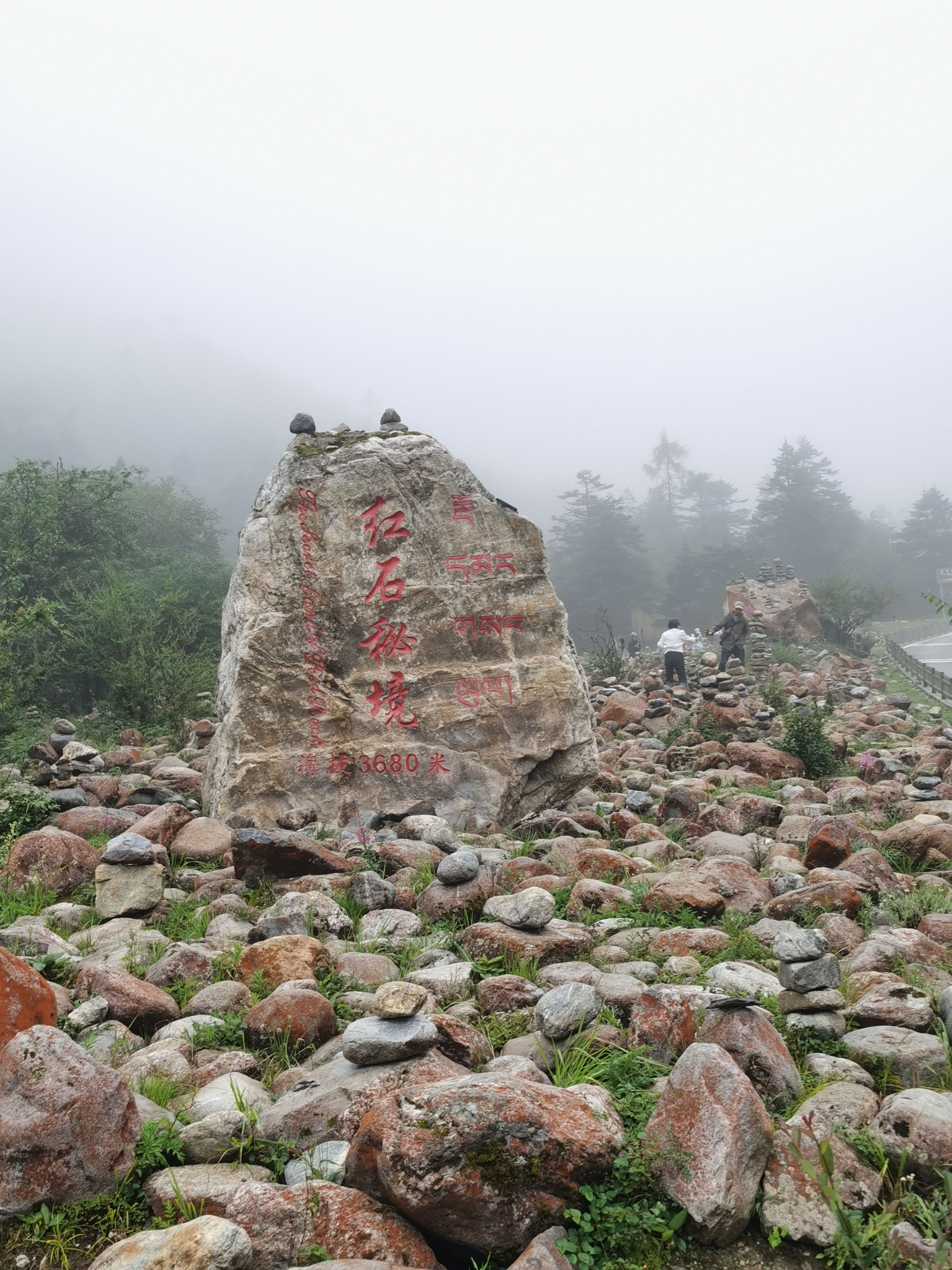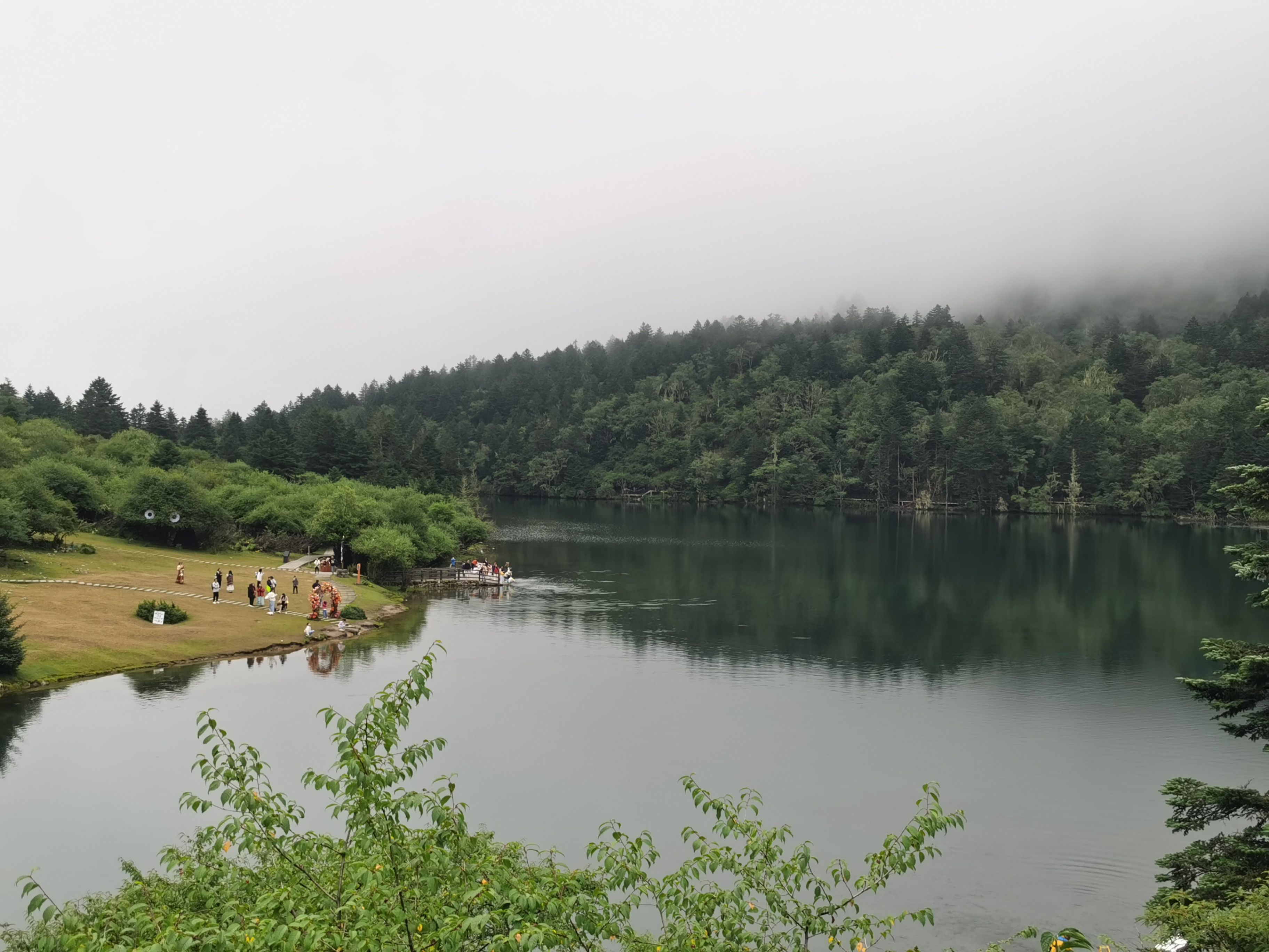 观光车的终点站便是木格措,又名野人海,作为川西北最负盛名的高山湖泊之一,它静卧于海拔3700米的高原之上,四周群山巍峨耸立,森林郁郁葱葱,草原广袤无垠,共同勾勒出一幅绝美的山水画卷。木格措湖宛如一位神秘的仙子,其景致一日数变,在不同季节,游客还能有幸观赏到“双雾坠海”“木格夕照”等如梦如幻的奇观。遗憾的是,我到访当日,天空时而大雨倾盆,时而大雾弥漫,却也因此邂逅了雨雾笼罩下的野人海,那一份天境般的静谧、空旷、神秘与梦幻,令人沉醉不已。
