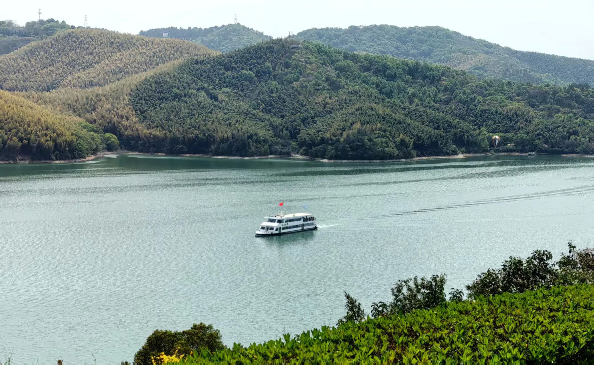 云顶观景台,无疑是观赏天目湖风光的绝佳之地。站在观景台上极目远眺,远山含黛,近水悠悠,连观景台的露台也融入这壮阔的美景之中,尽收眼底。抬眼望去,眼前的景象宛如一幅静止的山水画,山与水在天地间静默相对,美得让人窒息。直到湖面上游船缓缓划过,才打破这份静谧,让人真切地感受到湖光山色的静美,那种动静相宜的美,着实令人陶醉。能在这样一个美好的日子里登高望远,饱览如此胜景,当真是人生一大幸事。