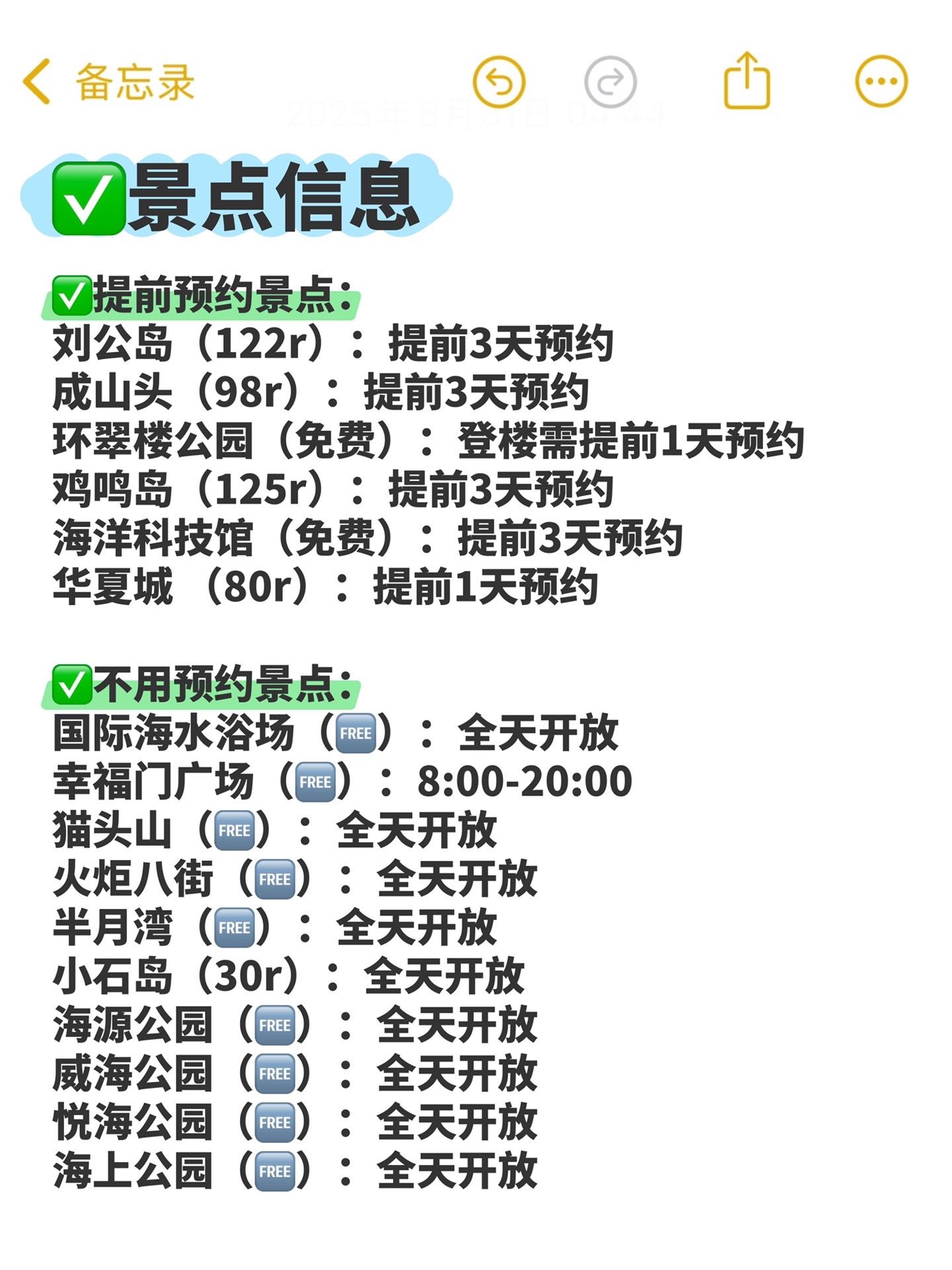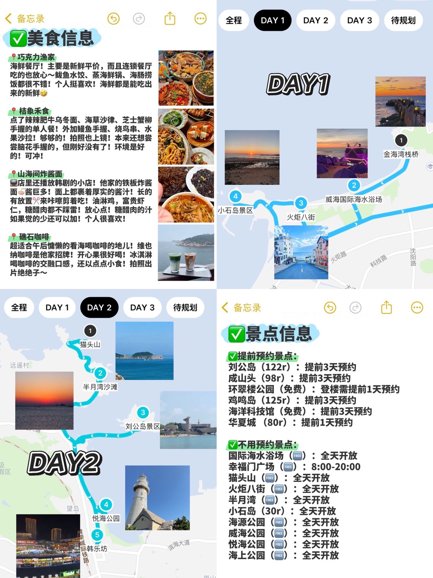 威海!真的没有比这更实心的攻略啦!码住!威海景点其实大多都在沿海岸线上!提前做好攻略,是真的可以少绕路!大概要去的景点信息、时间都码好了!真的码住这篇就能闭眼冲啦!