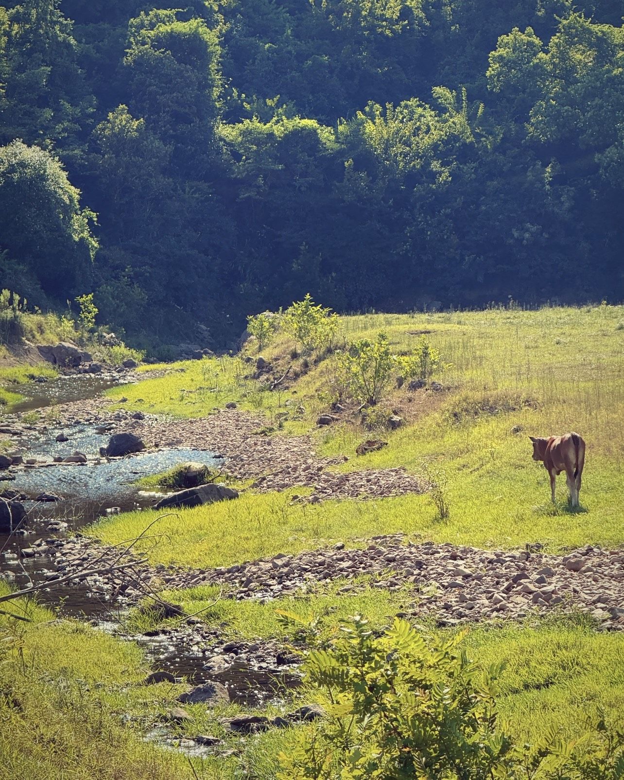 在那里可以野炊,连天幕都不需要,原相机直出都是一绝。竹筏和水上秋千很适合女孩子拍照打卡,还能和小牛互动、拍照。