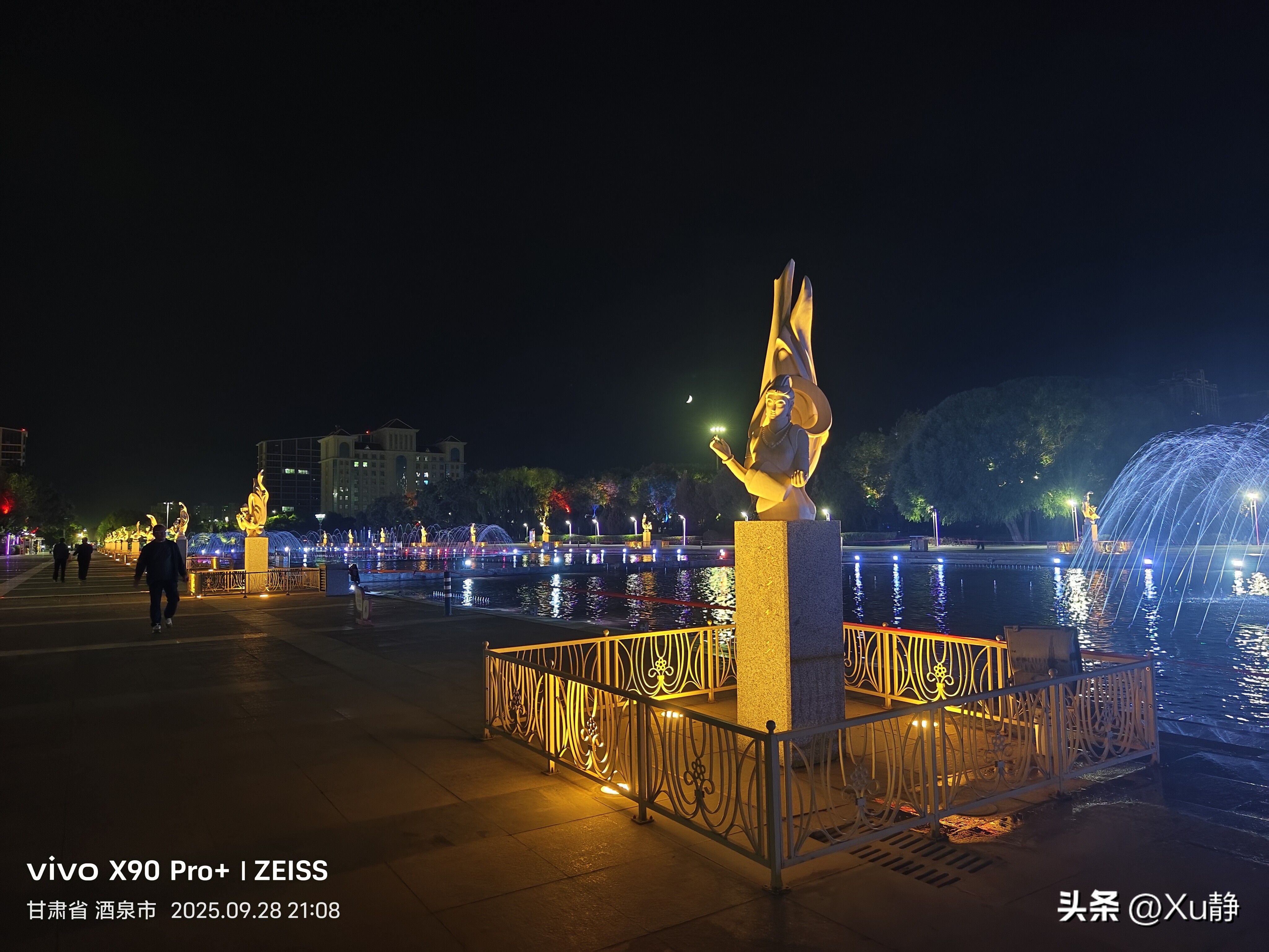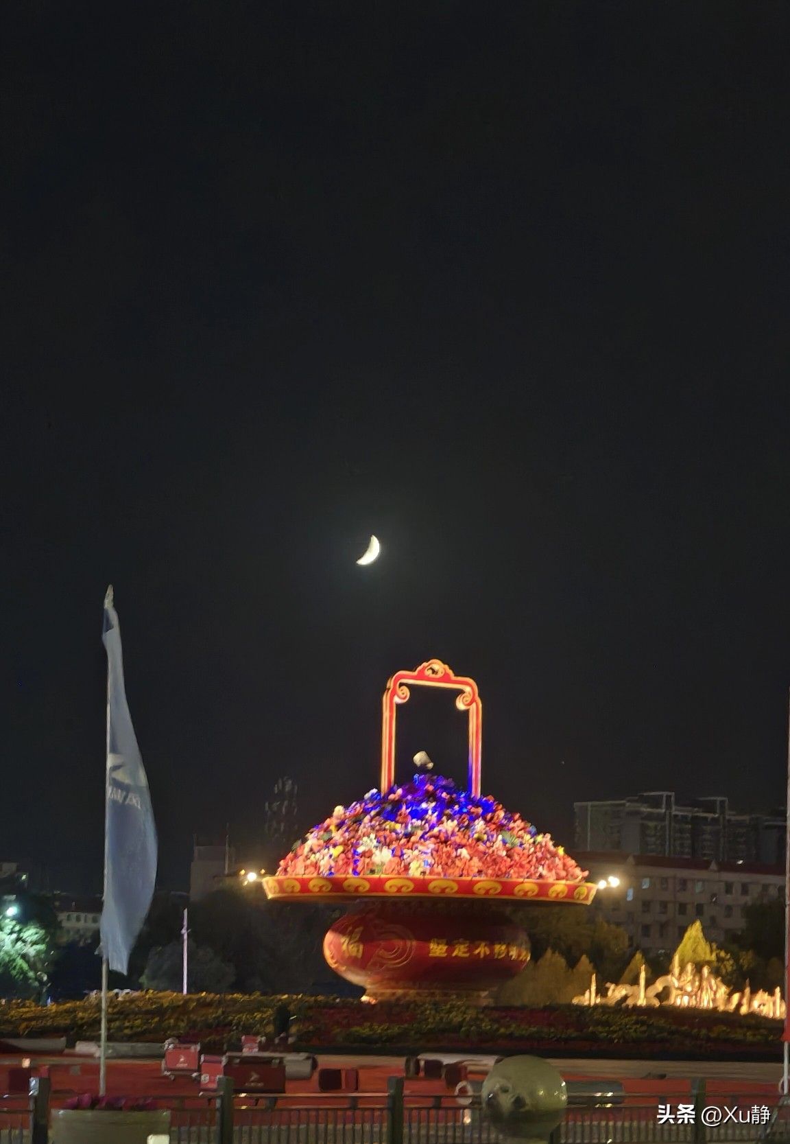 吃完饭,又去市政府附近的广场转了转,这里的广场非常宽阔,有两处喷泉水池,两处人物雕塑,灯光璀爛,市民们散步,跳广场舞的,悠闲自在,远处天空的一弯明月映衬着这座历史悠久的古城,浓重又充满着活力。