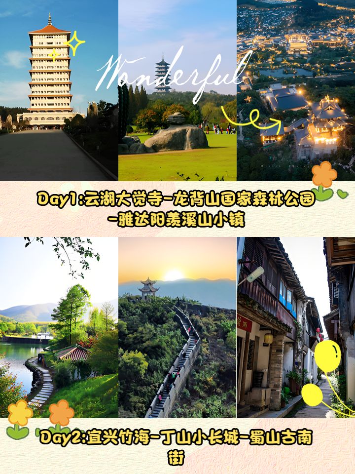 两天一夜的宜兴之旅就这样圆满结束啦!是不是感觉超级充实呢?从佛文化的熏陶到自然美景的探秘再到小众景点的发现每一步都是难忘的回忆!希望大家也能喜欢这条路线下次有机会一起去探索更多的美景吧!
