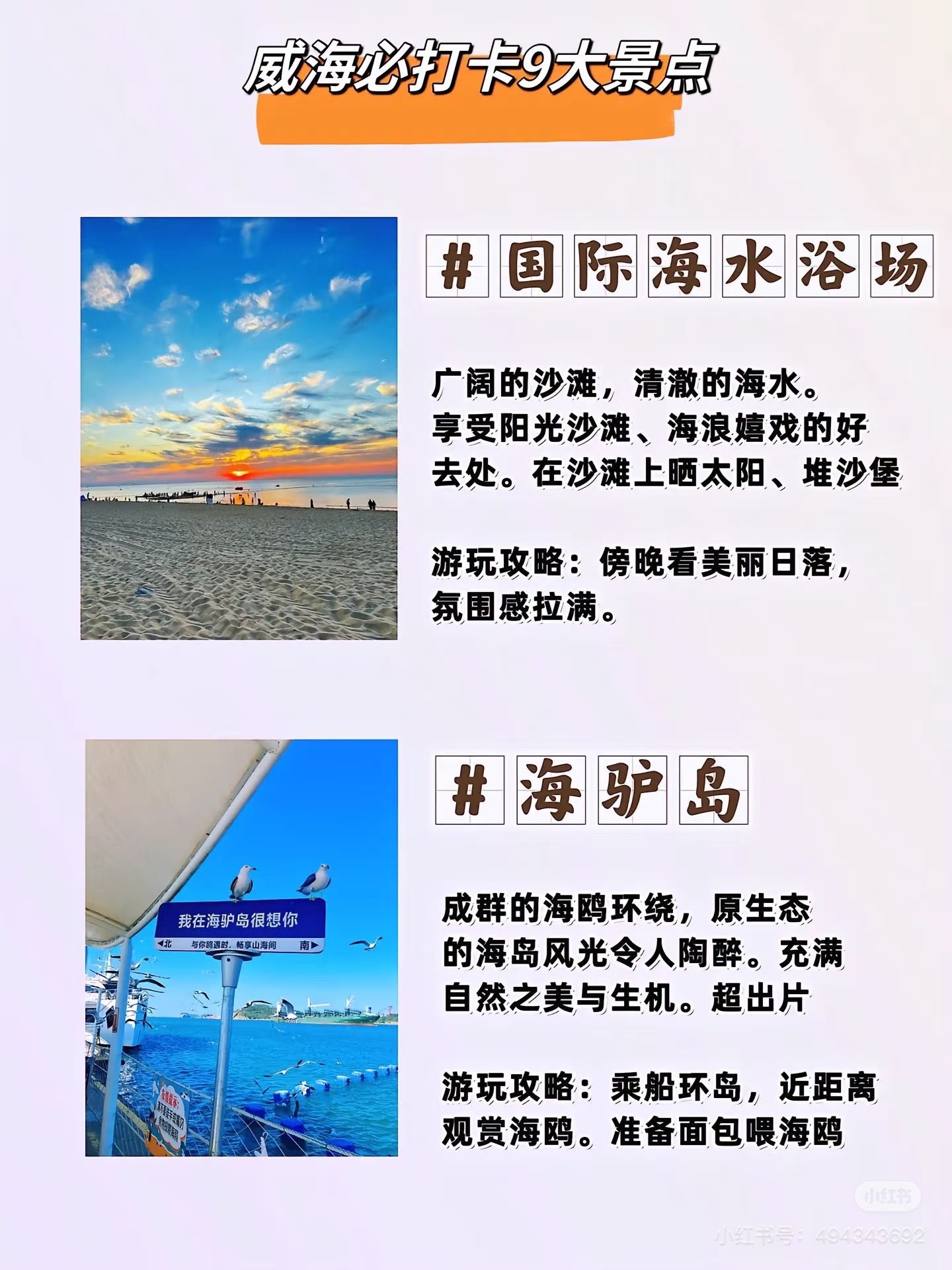 游玩攻略: 打卡海之窗雕塑,沿海岸线散步,享受威海的悠闲氛围,感受城市的节奏。