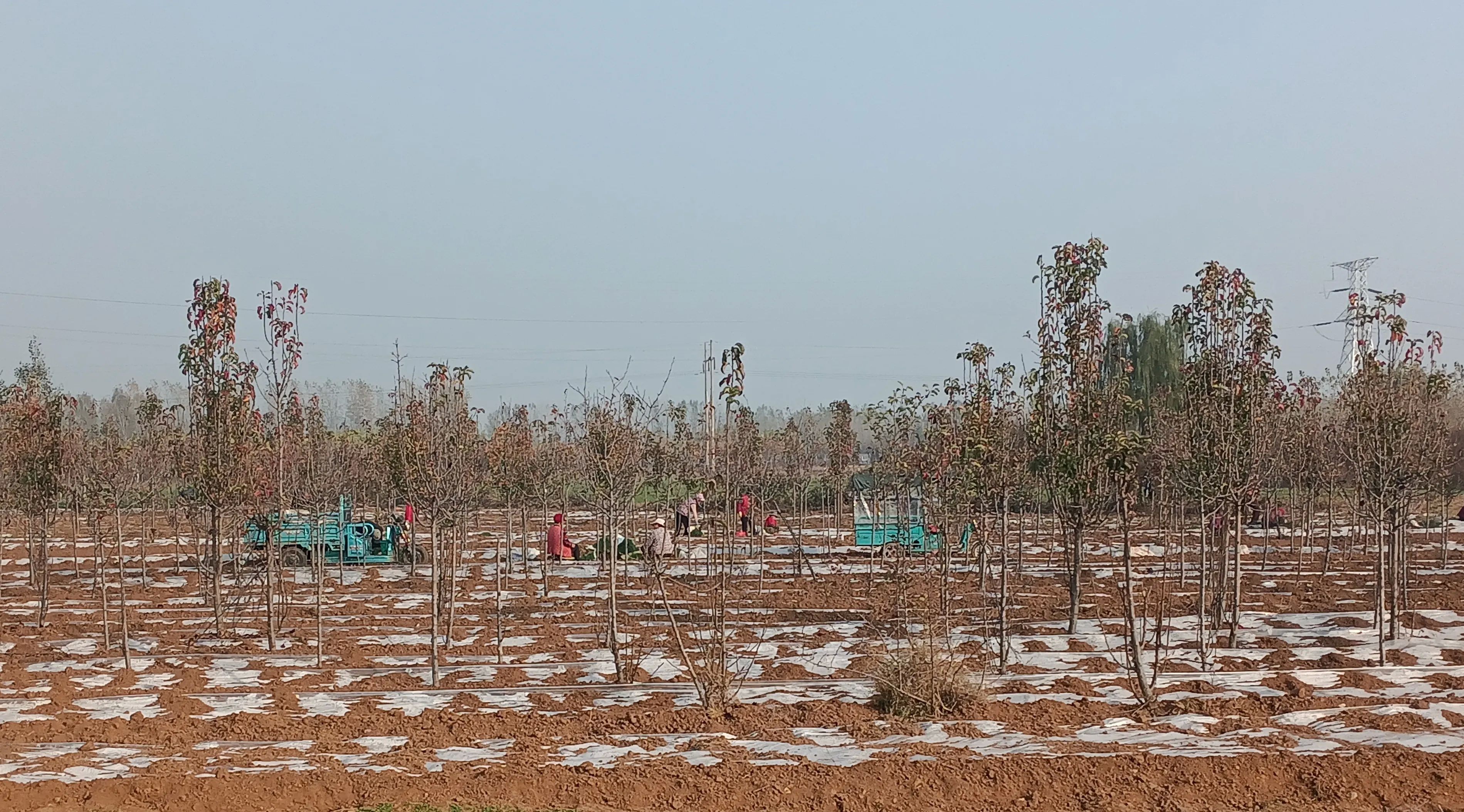 一处劳作场地离路较远,加之又在树林之中(为播种农作物,那田间的树都被锯去了树冠,仅留树干),我没看清他们在干什么。