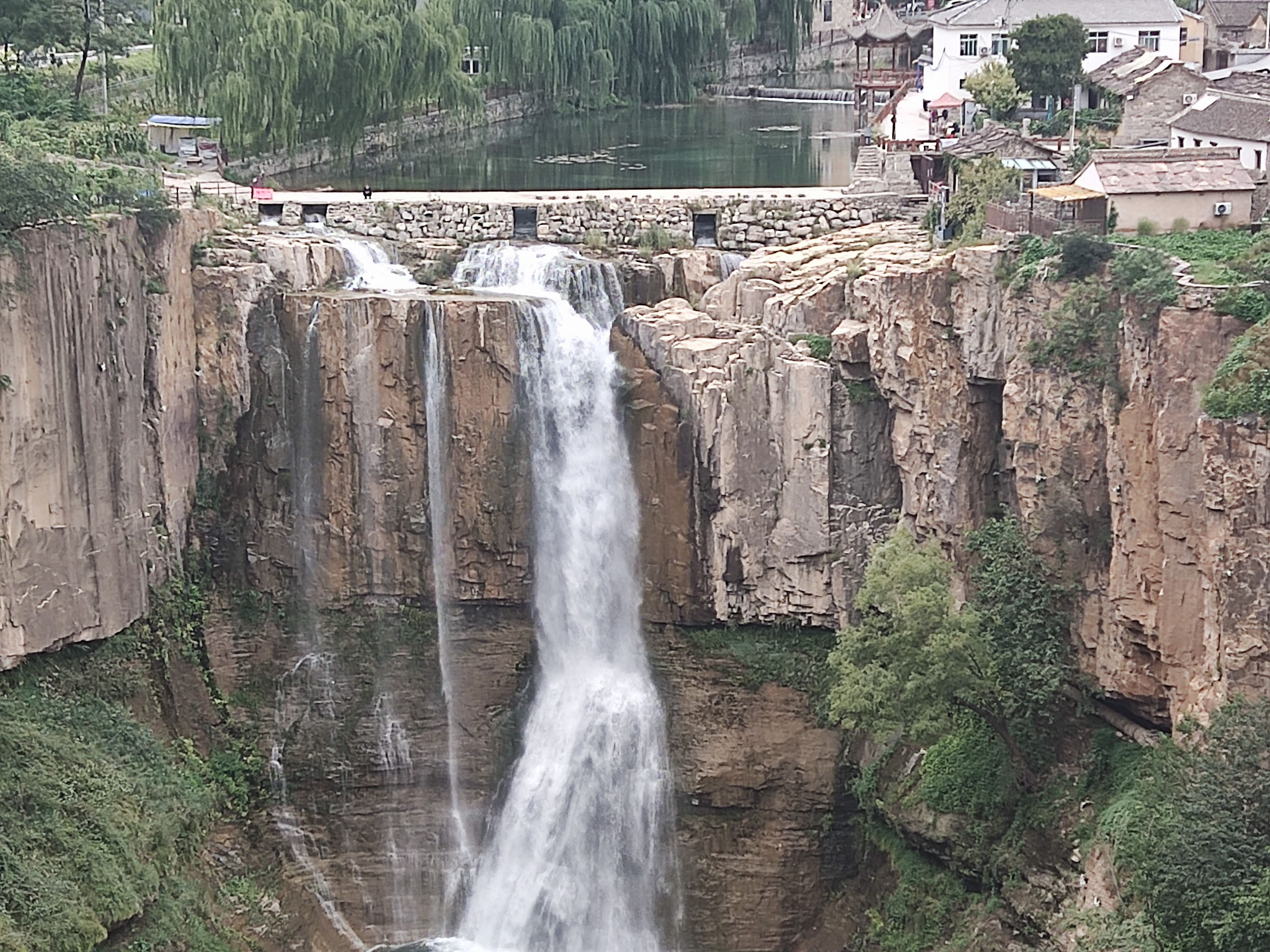 经过太行一号旅游公路到虹梯关村拐向虹霓村方向,经过一段不亚于黑毛沟的山谷,以及牵牛岩隧道群以及虹梯关城门,初步领略了古代山民通向外界的不易。而后来到旅游圈闻名的虹霓村山沟的瀑布前,路边停车,观景台远观拍照,下台阶几分钟到崖底近距离接触瀑布的震撼,水花四溅,瀑声轰鸣,又望而生畏。