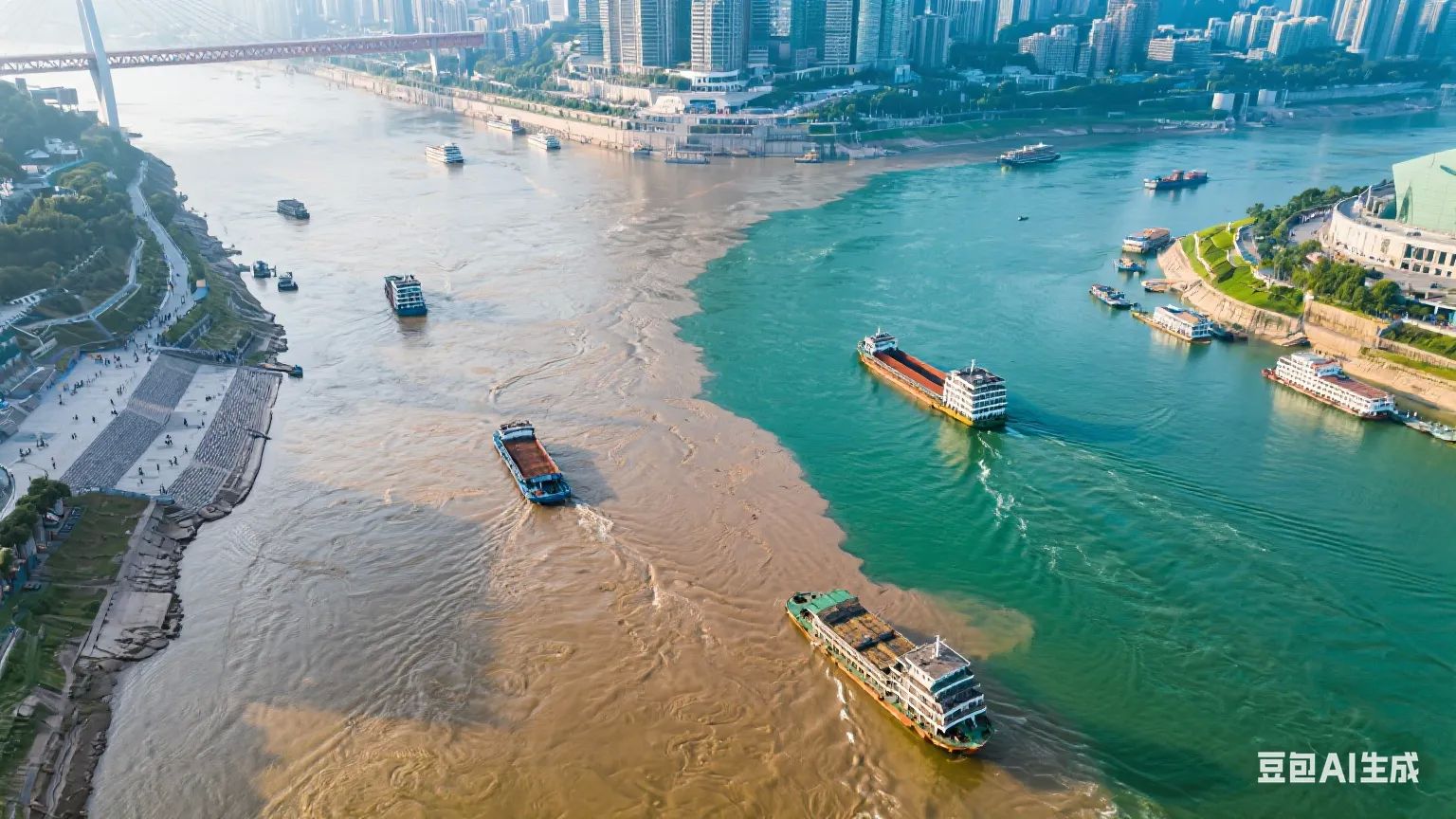 站在朝天门广场,视野豁然开朗。左边是嘉陵江,江面开阔,水流平缓,宛如一位温柔的少女,静静地流淌;右边是长江,江水奔腾,气势磅礴,好似一位豪迈的壮士,勇往直前。两江交汇处,泾渭分明,形成一道独特的“夹马水”景观,令人叹为观止。