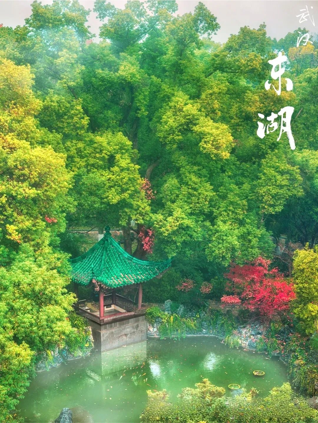 听涛:邂逅诗意秋韵:听涛景区,绝对是东湖春日里最浪漫的存在。这里不仅是观赏日出的绝佳胜地,当细雨纷纷洒落,湖面泛起层层涟漪,整个景区仿佛被蒙上了一层薄纱,如梦如幻。藏在深处的周苍柏纪念馆前,一座亭子在红枫的环绕下,散发着独特的韵味,这不就是武汉版的“爱晚亭”吗?沿着落霞水榭漫步,看湖水波光粼粼;在碧潭观鱼,感受鱼儿的灵动;路过行吟阁、沧浪亭,聆听历史的回响;经过听涛游泳池,回忆那些夏日的欢乐;最后走进苍柏园,感受岁月的沉淀。每一步,都是一次与春日的深情对话。