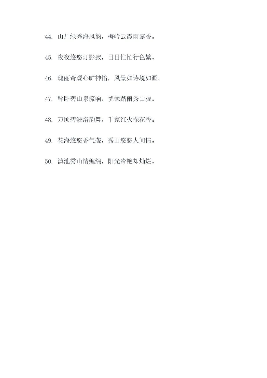 - 秀山以“匾山联海”闻名,历代文人墨客留下大量诗词楹联,例如“秀山轻雨青山秀,香柏鼓风古柏香”的#回联文# ,文化气息浓厚。