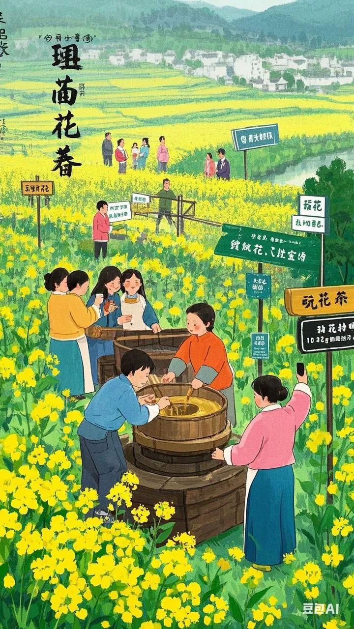 春风吹拂的婺源江岭,万亩梯田油菜花海如金浪翻滚;武汉东湖畔的樱花大道,粉色花瓣雨与汉服少女相映成趣;伊犁河谷的杏花沟,牧民的马蹄声在花海中若隐若现。这个春天,全国乡村旅游市场迎来爆发式增长,"赏花经济"正以惊艳姿态打开乡村振兴新图景。