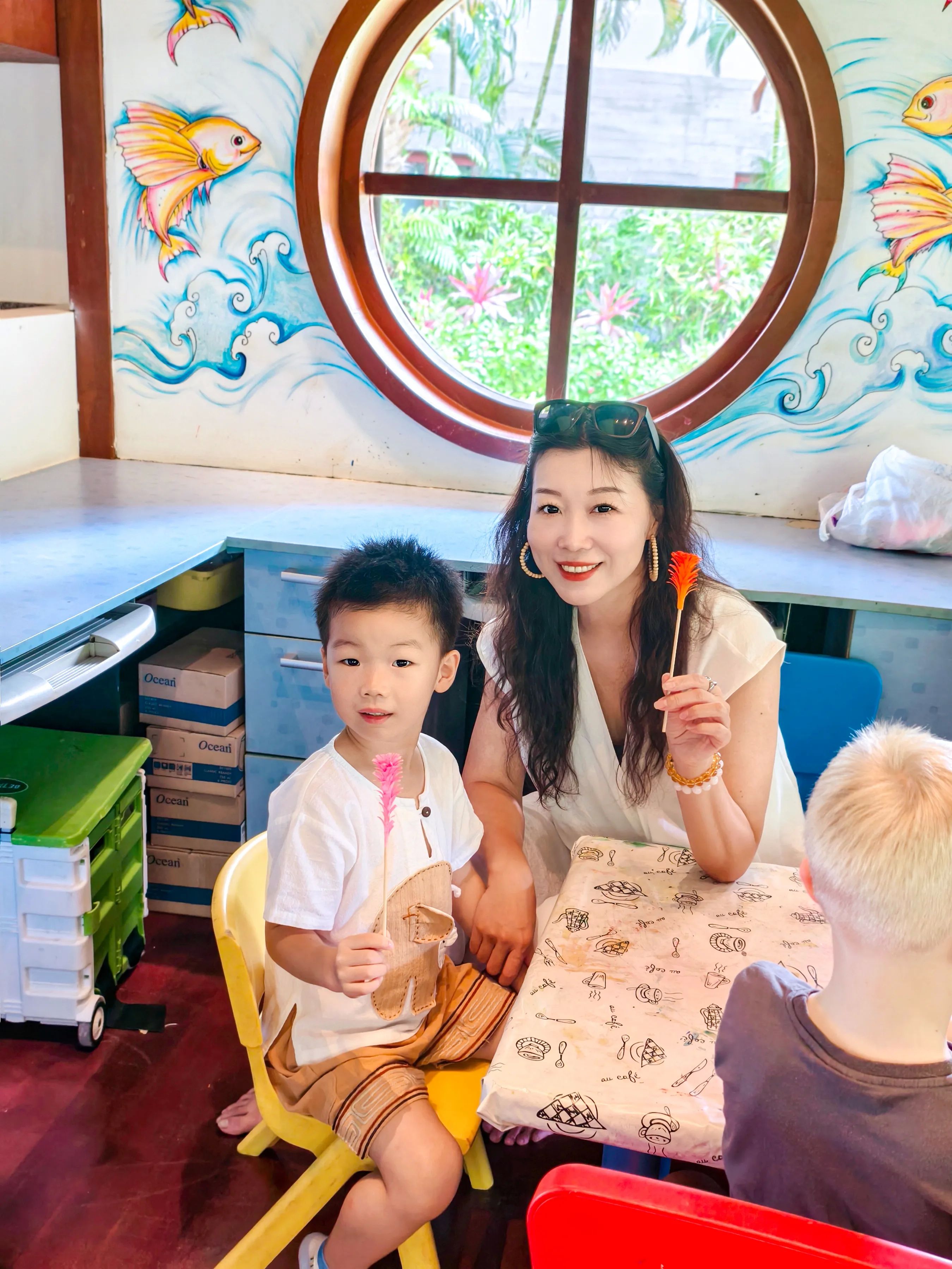 Kid's Club每日开设创意课程,孩子在导师指导下完成花艺制作与彩砂蜡烛创作,课后还有专人陪玩,堪称亲子度假的理想之选。