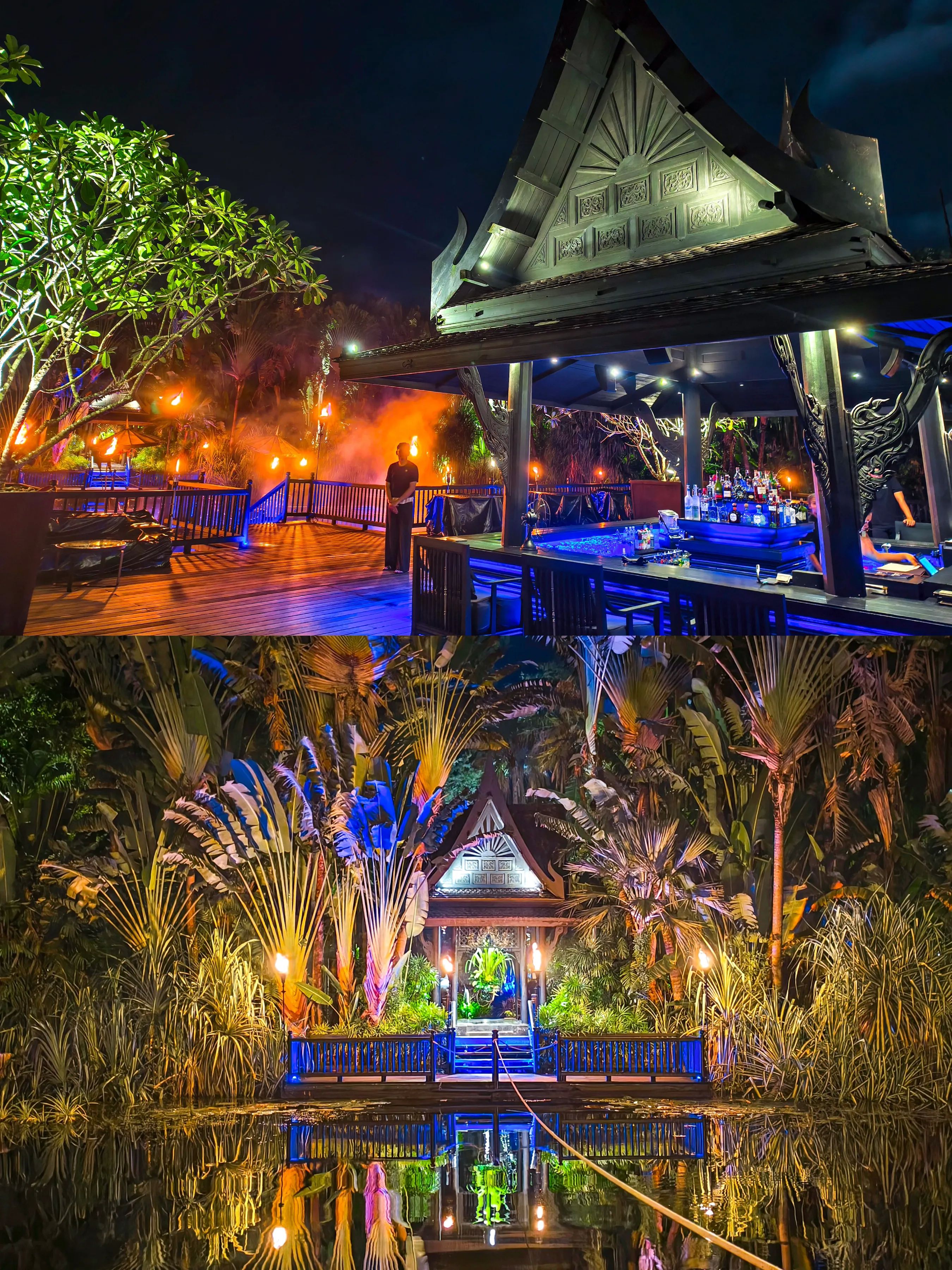 米其林星级餐厅Black Ginger需乘竹筏渡湖而至,夜幕中篝火与灯光交织出魔幻氛围。主厨将寻常食材通过创意搭配焕发新味,每道菜都堪称视觉与味觉的双重盛宴。
