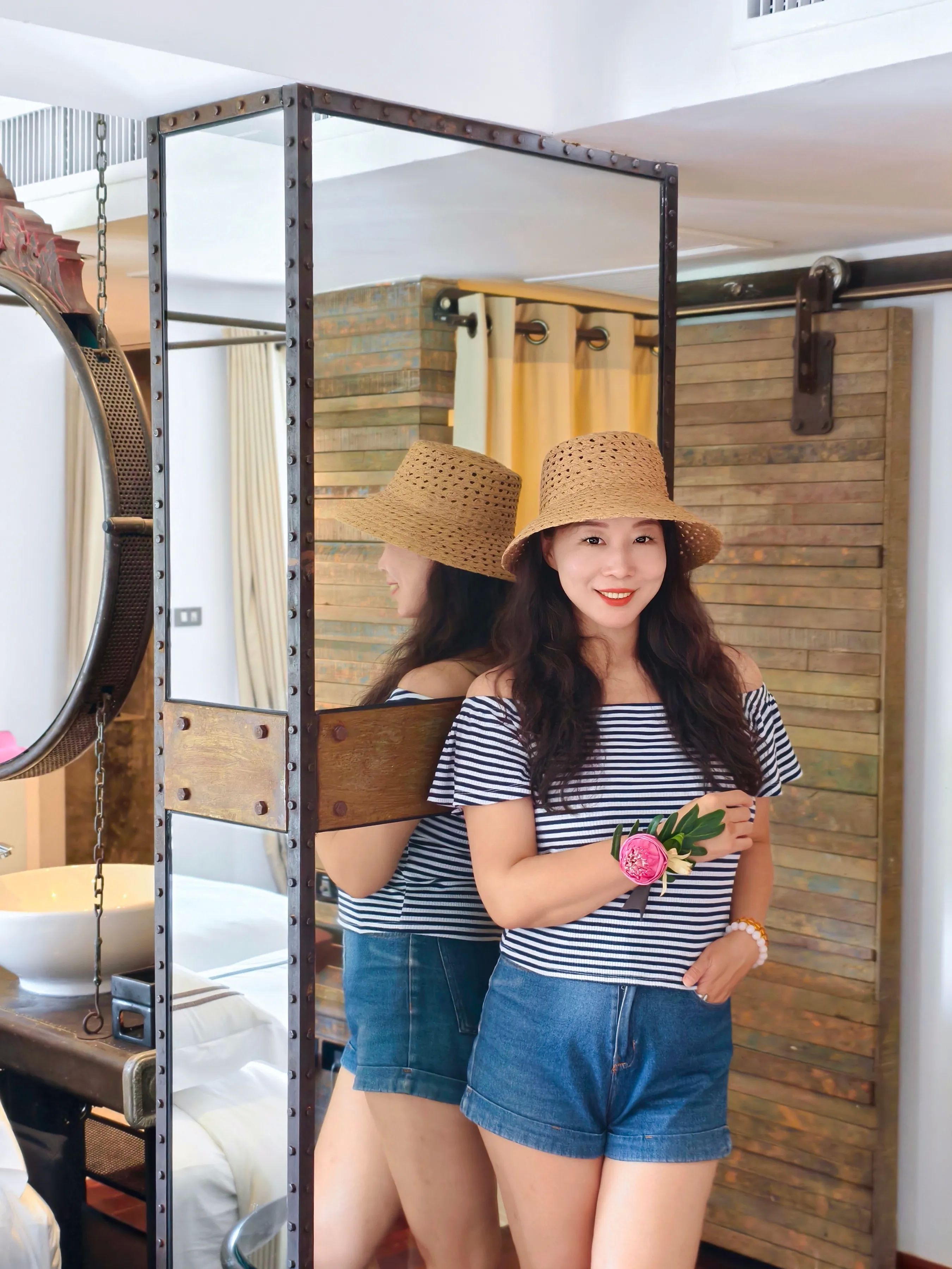 步入大堂便被独特的Champaka香氛环绕,这种采用泰国特有香料制成的香调在国内难得一见,配合赠送的荷花腕花与冰镇花茶,瞬间将度假仪式感拉满。