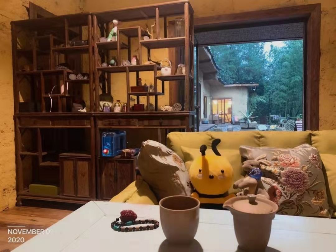 入门处有一个由石板、石台、石凳、石桌组成的中式农家小院。午后坐在园中品茗,耳边传来风的絮语,透过竹林的沙沙声~夜幕降临时与亲朋好友还可以在园中围坐烧烤,想想都非常惬意。