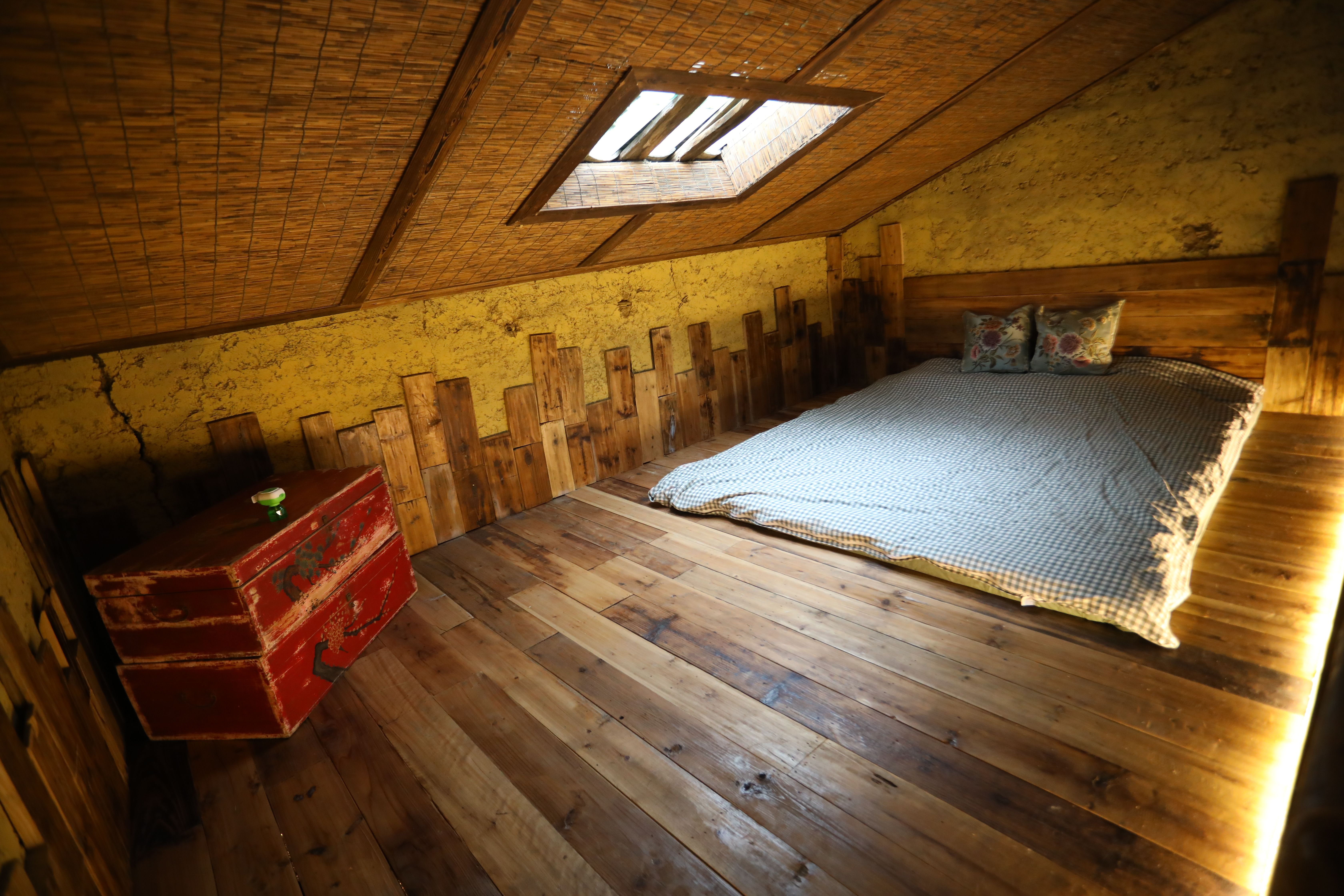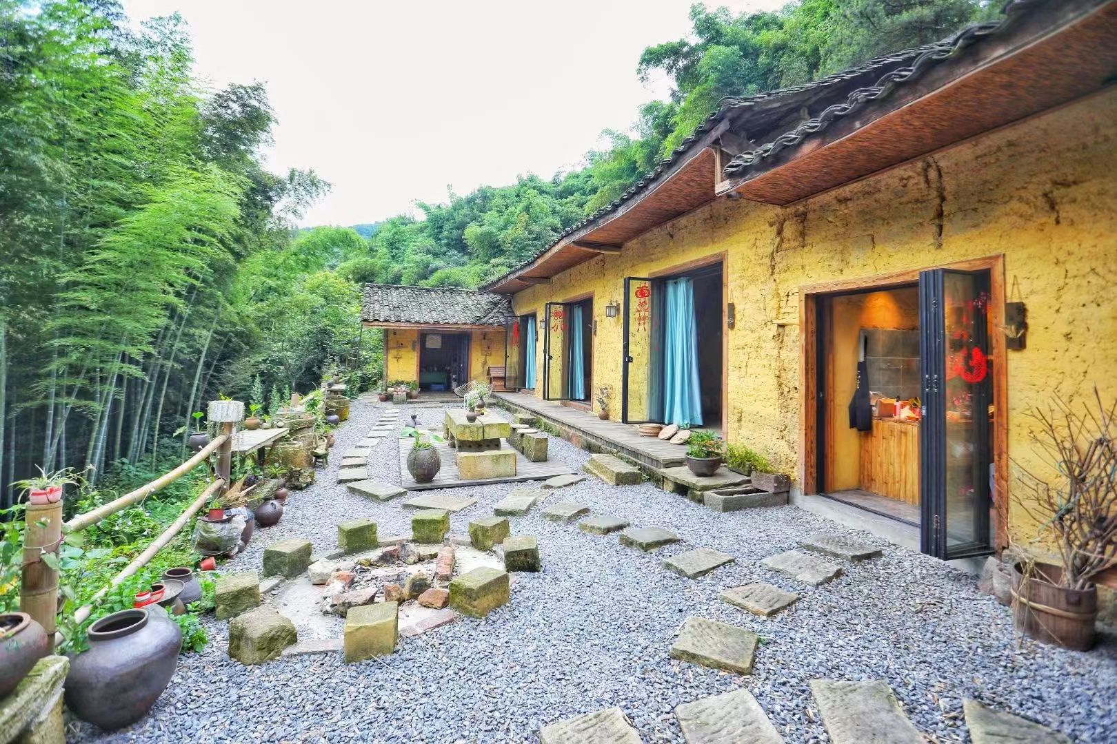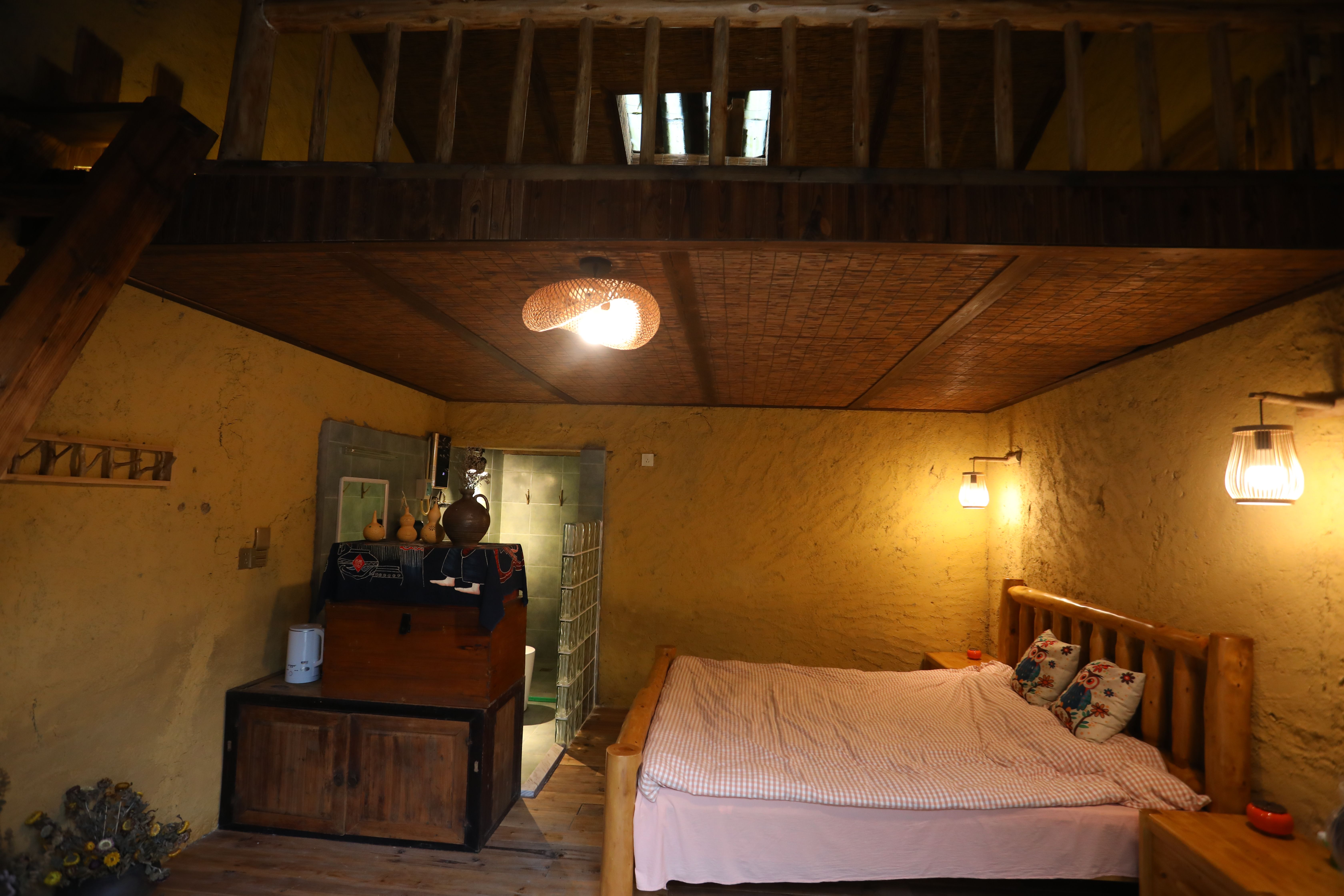民宿是一座黄墙青瓦的夯土房,面积约200㎡,4室2厅1厨5卫,配备一个中式农家小院。