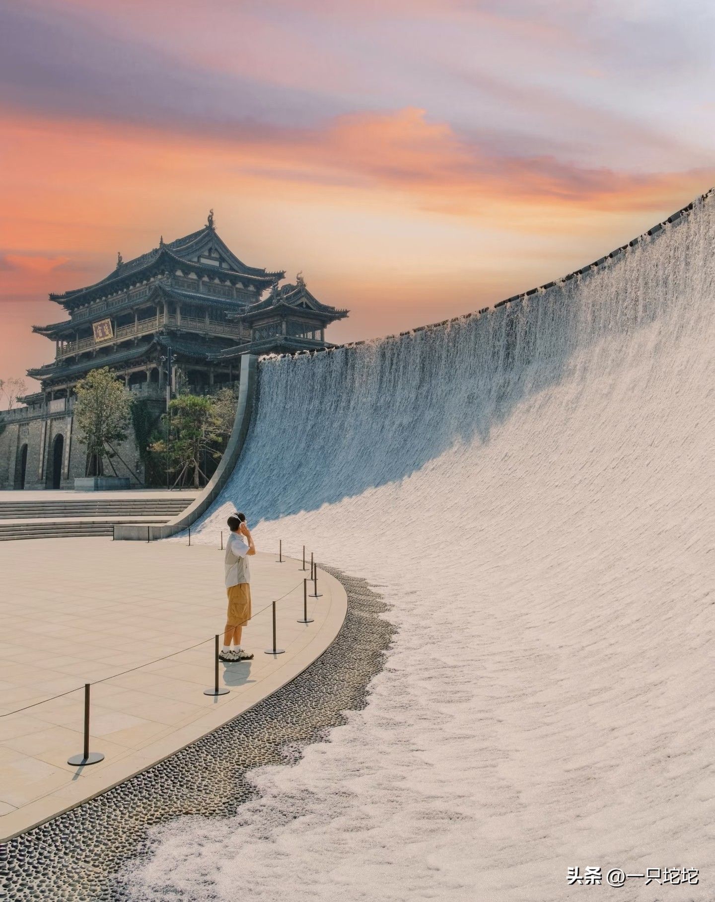 - 盐官潮墙的瀑布超出片,水流倾泻时氛围感拉满;