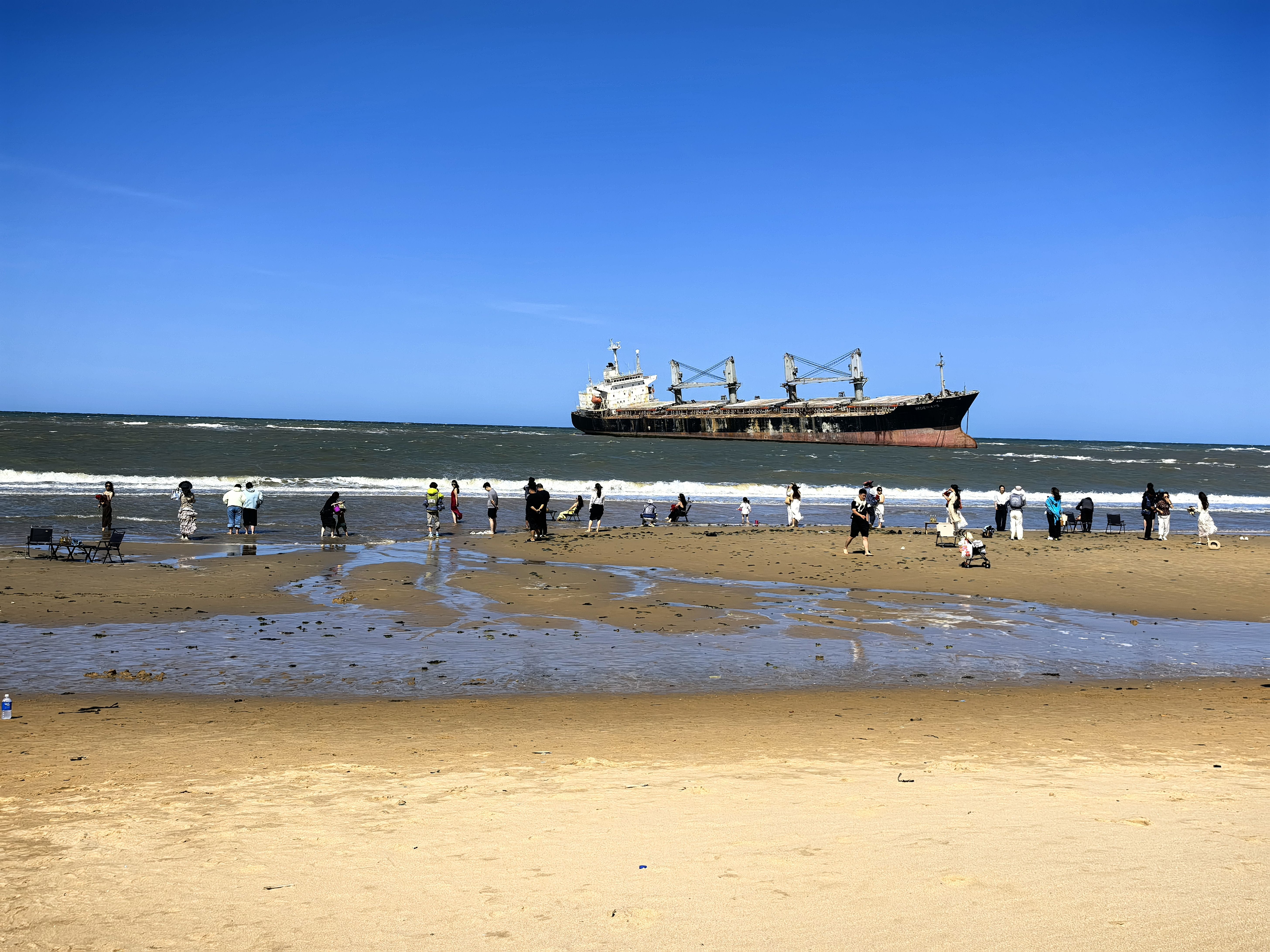 一艘大船,因意外驶入这片沙滩搁浅,完成了它的航行使命,却成就了众多年轻人的奔赴地。