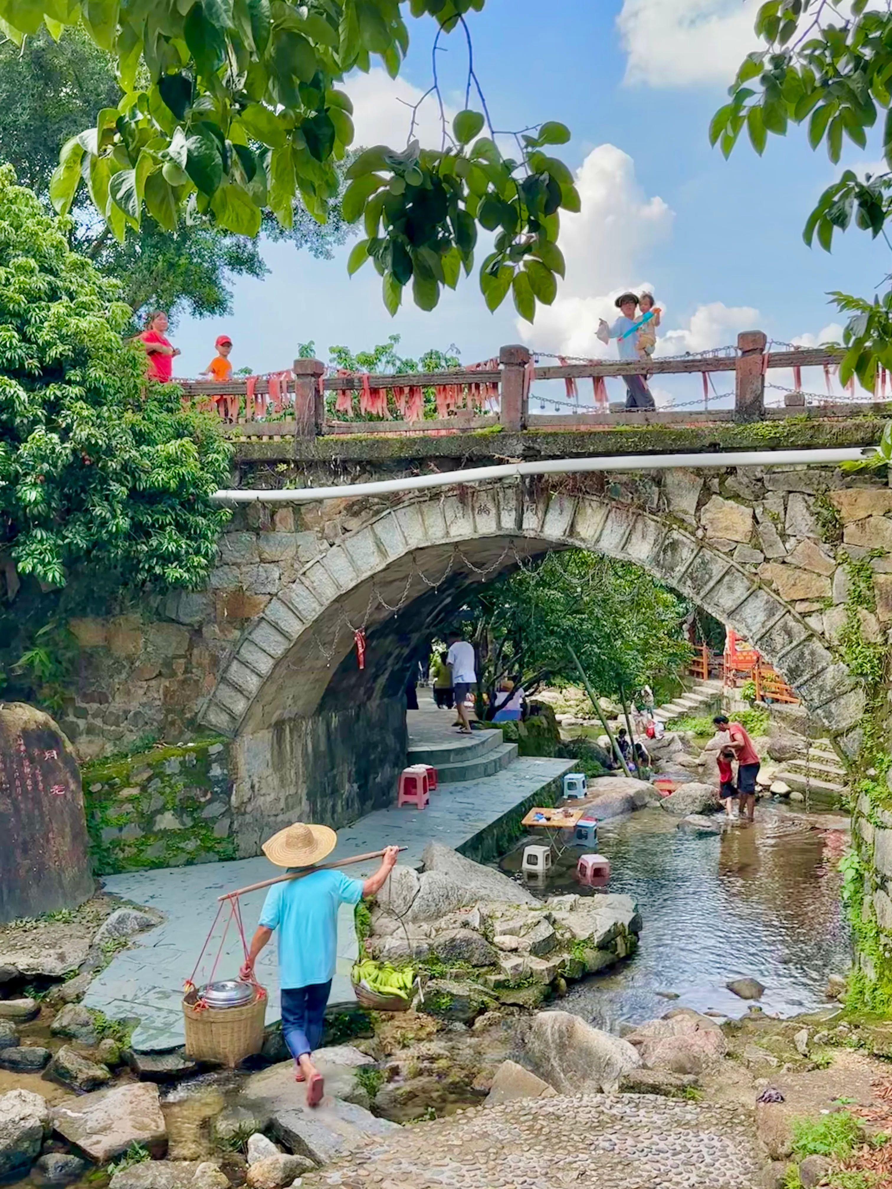 沿途都有小摊档,卖水果、特产、豆腐花、凉粉、小吃等等,店铺还会提供桌椅,可以坐在溪流里休息,泡着冰泉吃着水果,真的好惬意呀!(而且还不用自己带露营装备)