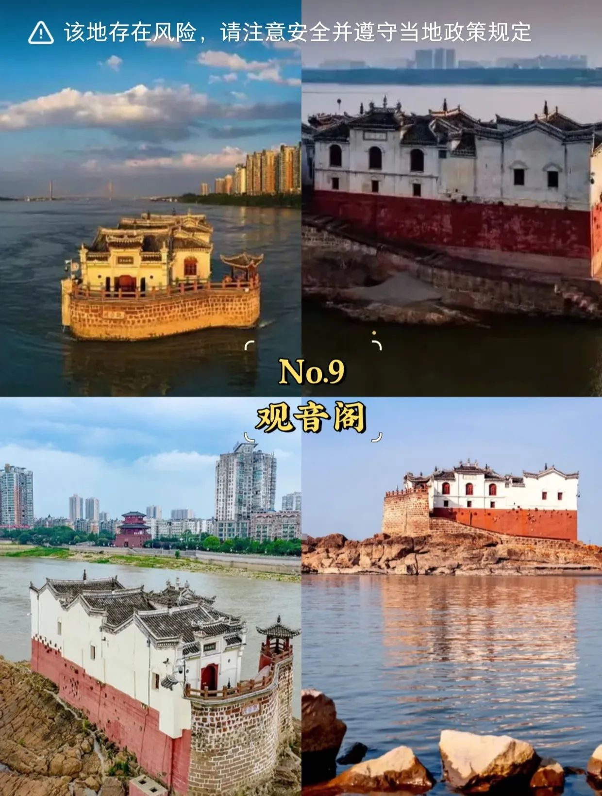 长江奇观:免费远眺“万里长江第一阁”,700年历史的观音阁矗立江心,涨水时宛如浮空仙阁。清晨薄雾中拍出的照片像水墨画 。