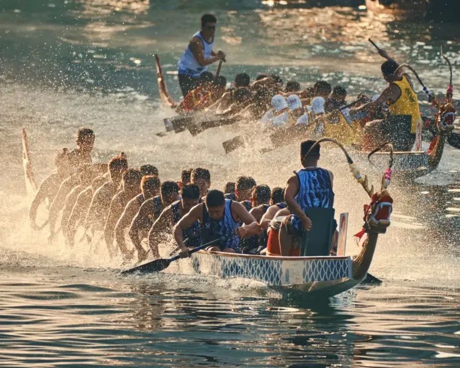 端午的脉搏,在铿锵的龙舟鼓点中强劲跳动。这项源自龙图腾祭祀的古老仪式,早已演变为一场全民参与的文化狂欢。广东佛山的叠滘龙舟将竞技推向极致——25米长的龙舟在不足6米的狭窄弯道中漂移转向,鼓手与桨手在惊心动魄中演绎着力量与协作的传奇。而在湖北鄂州泽林镇,陆上巡游的“旱龙舟”同样气势磅礴,7米长的龙舟昂首前行,将屈原的缅怀化作大地的诗行。