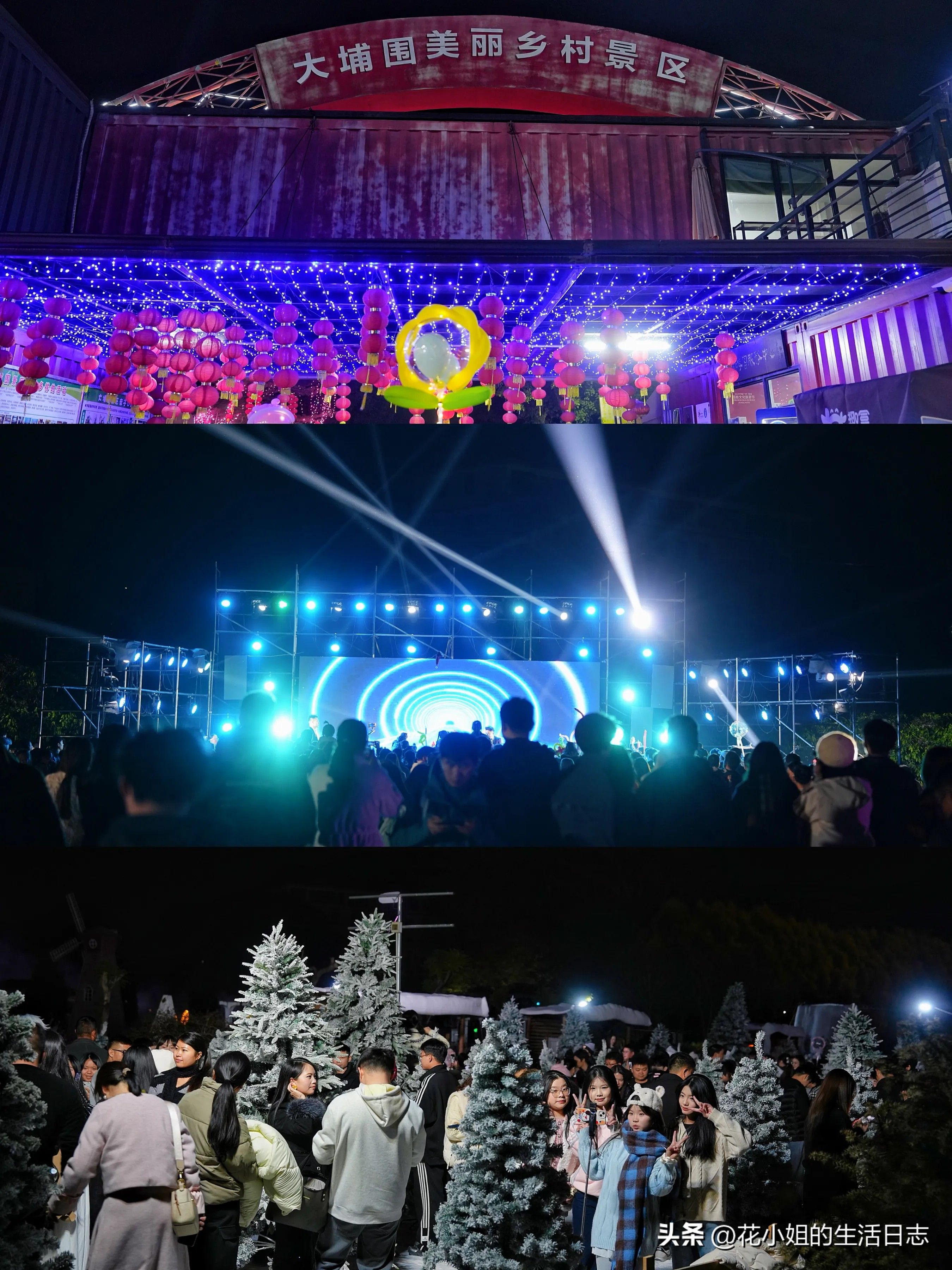 白日里来这里赏网红花海,围炉煮茶,拍照打卡。