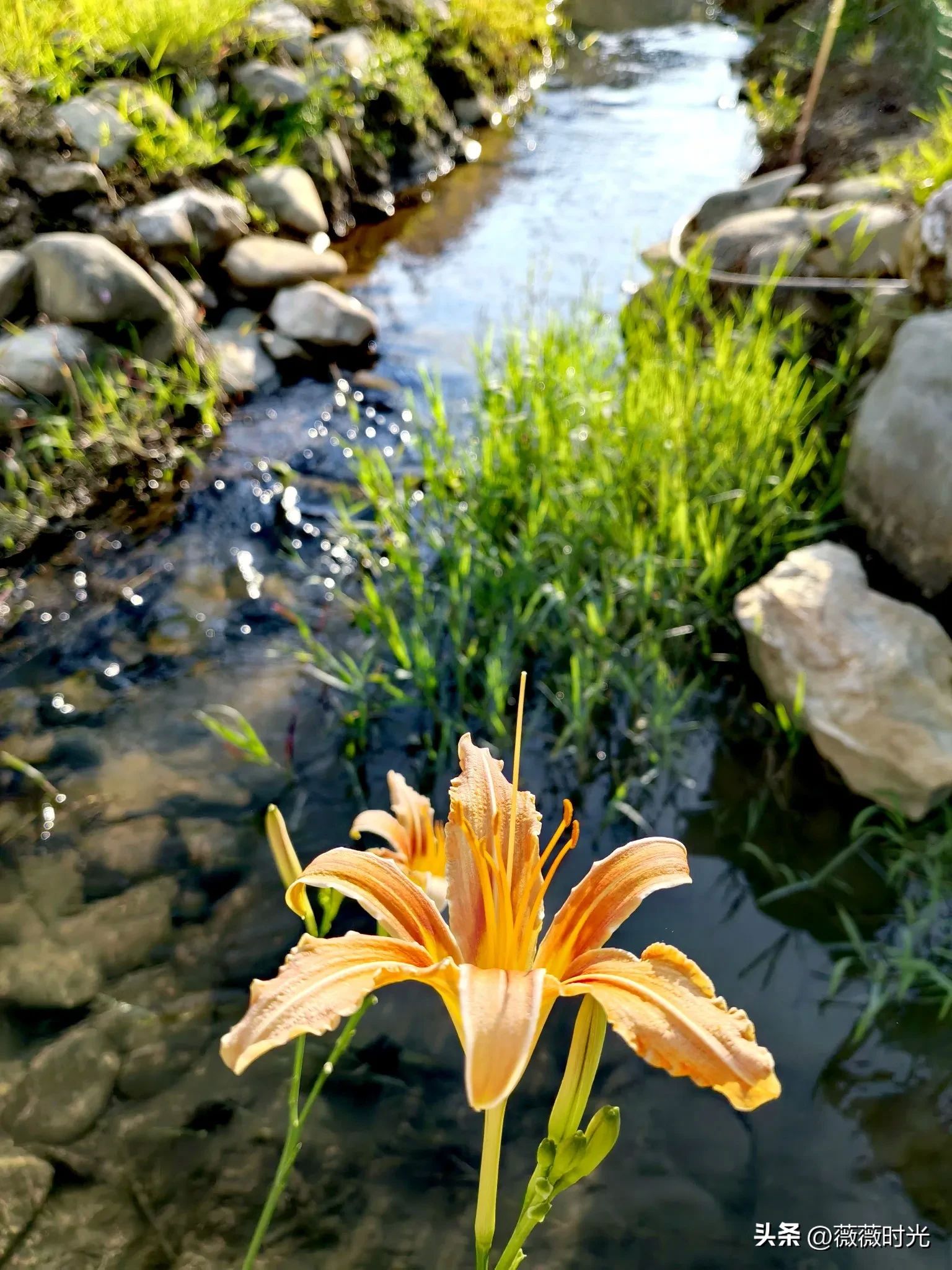 3、看稻田落日+荡秋千:从雕塑旁一条小路进去,就走进了一片稻香田园,溪流旁开满了黄花,不远处还有一架做成耕田样式的秋千,孩子们在这里喂鸭子,荡秋千,玩得不肯走。