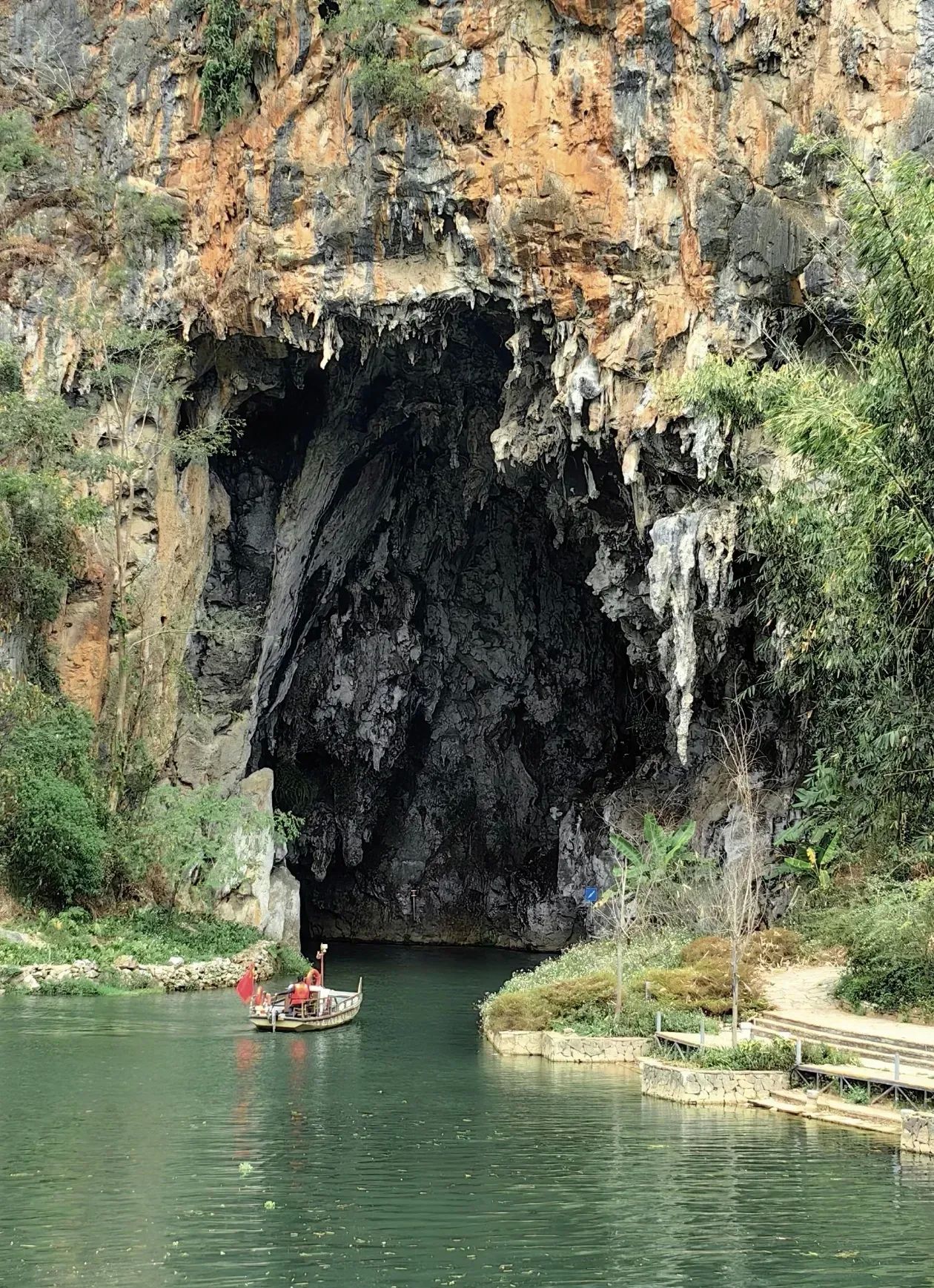 独特的进村方式,需从村外小码头坐小木船,沿溪流穿越约1公里的黑暗山洞,方能入村,不仅新奇,还充满神秘感。随着小船划过,黑暗中流水声和蝙蝠振翅声,如入奇异世界。“林尽水源,便得一山。山有小口,仿佛若有光;便舍船从口入。”说的都是真的。竹筏的灯光照在洞中的钟乳石上,仿佛在探险,经过二十来分钟的“时光遂道”后,就能进入村落。