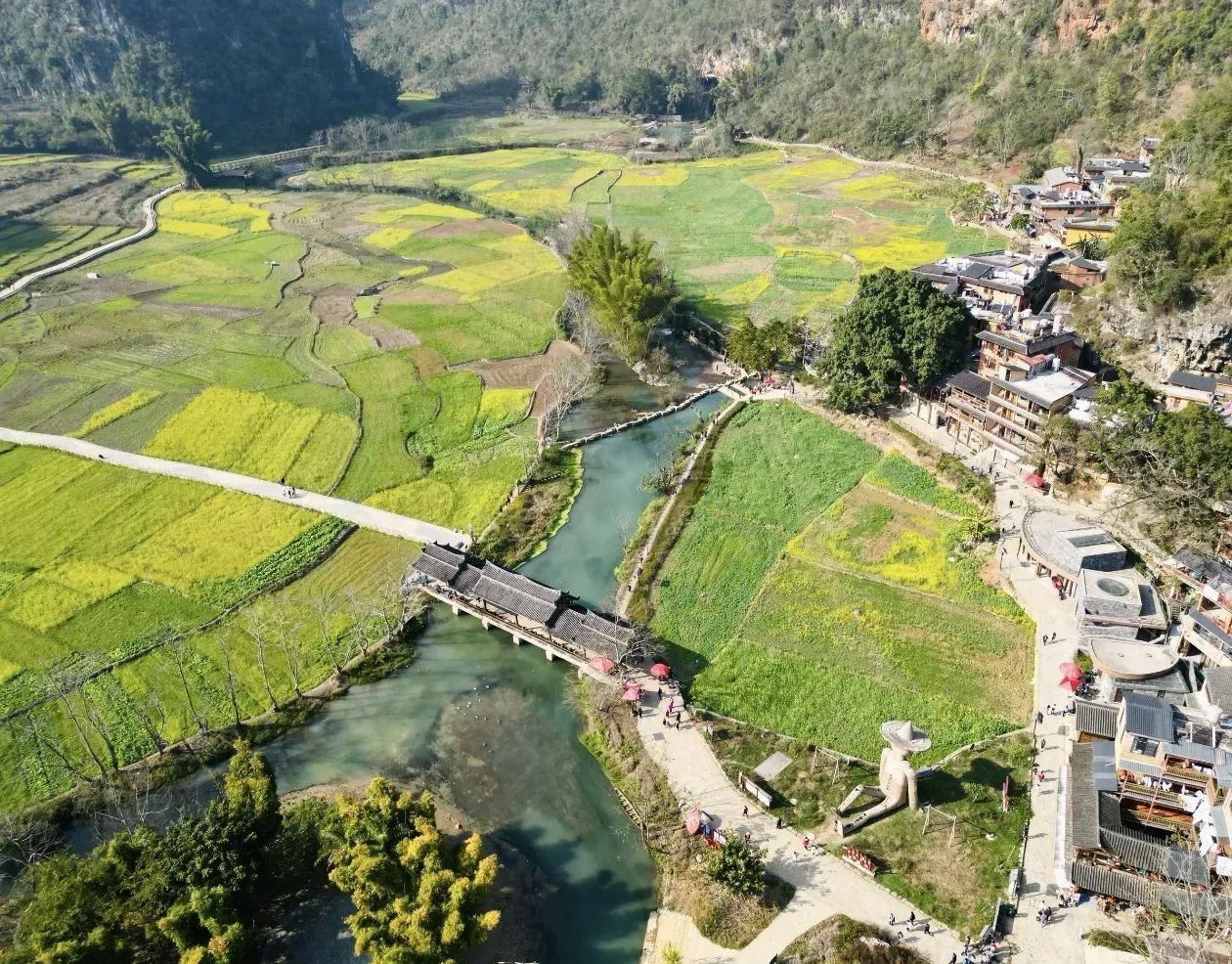 坝美村位于云南省文山州广南县,一个藏在山谷中的古老壮族村落。因其独特的喀斯特地形地貌、溶洞、河流及村落酷似晋代文学家陶渊明所描述的桃花源,故而被称为"最后的世外桃源"。