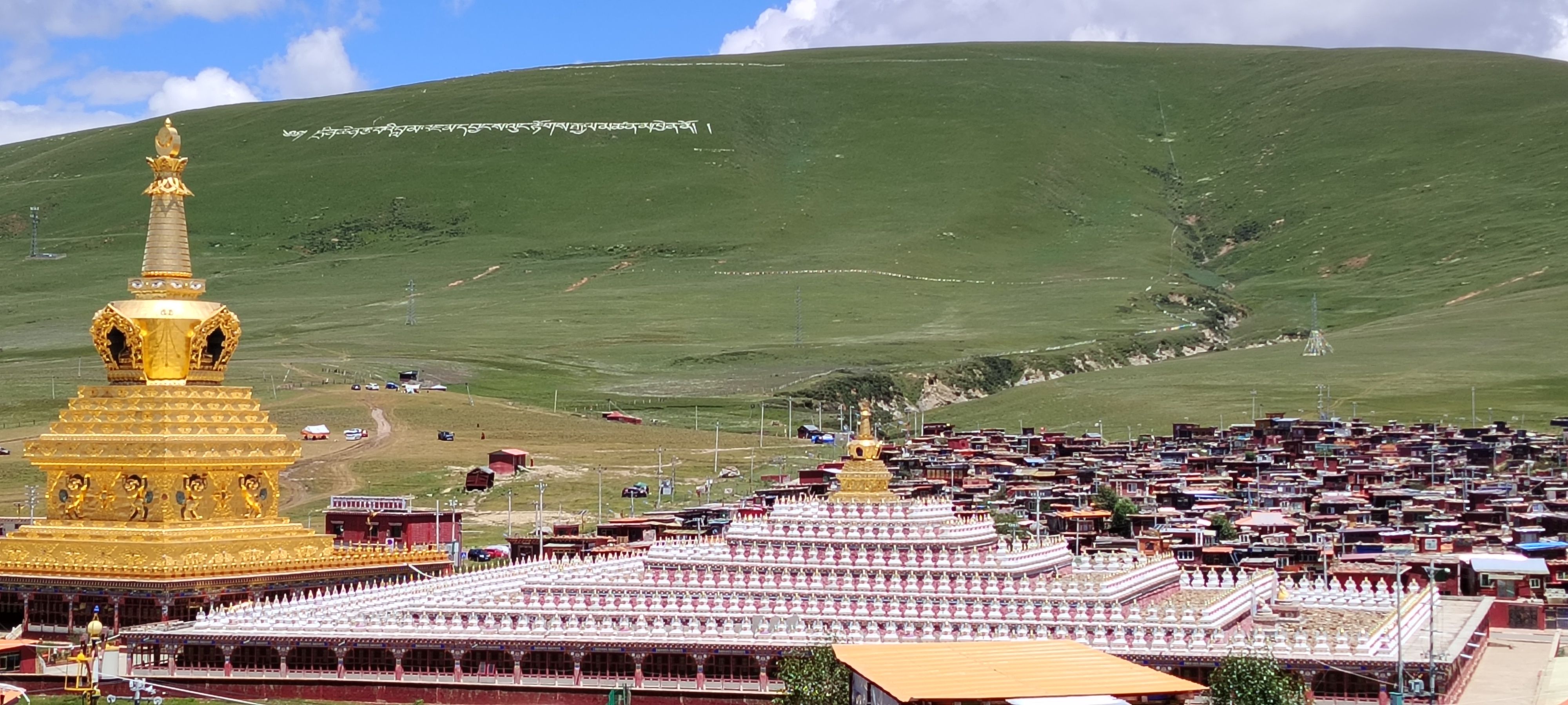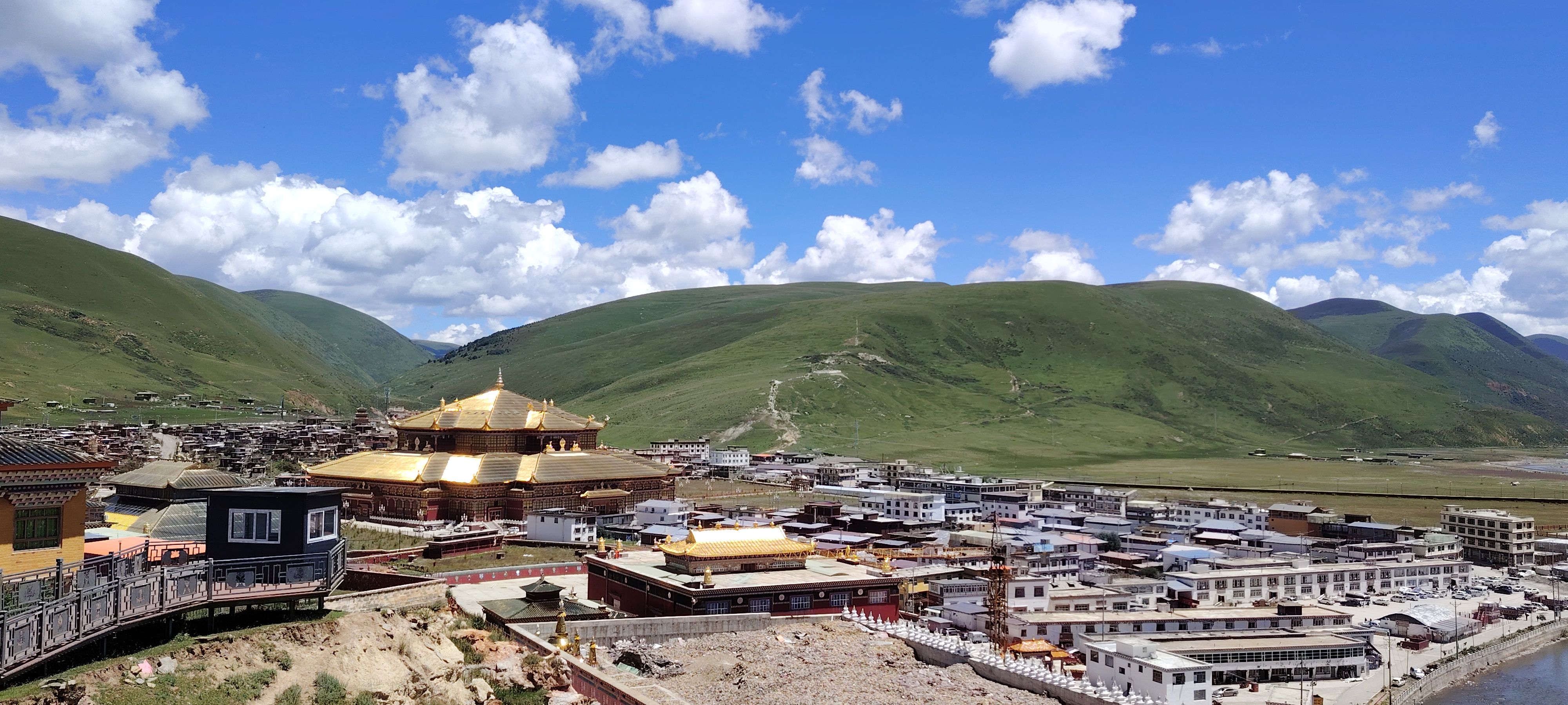 海拔约4000米亚青寺,与同为藏传佛教宁玛派的色达五明佛学院相距约280公里 。地处昌台大草原的盆地,地势开阔平坦。盆地边沿是因寺而兴的集镇,给游人提供吃住、购物等服务。盆地中心,一条大河像玉带一样围护着一个独立的岛屿,这就是觉姆岛,修行的女子全部居住于此,周边无数条小溪纵横,与草地共生成高原湿地。湿地边还有一些因陋就简的棚子,据说也是修行的处所。(待读)
