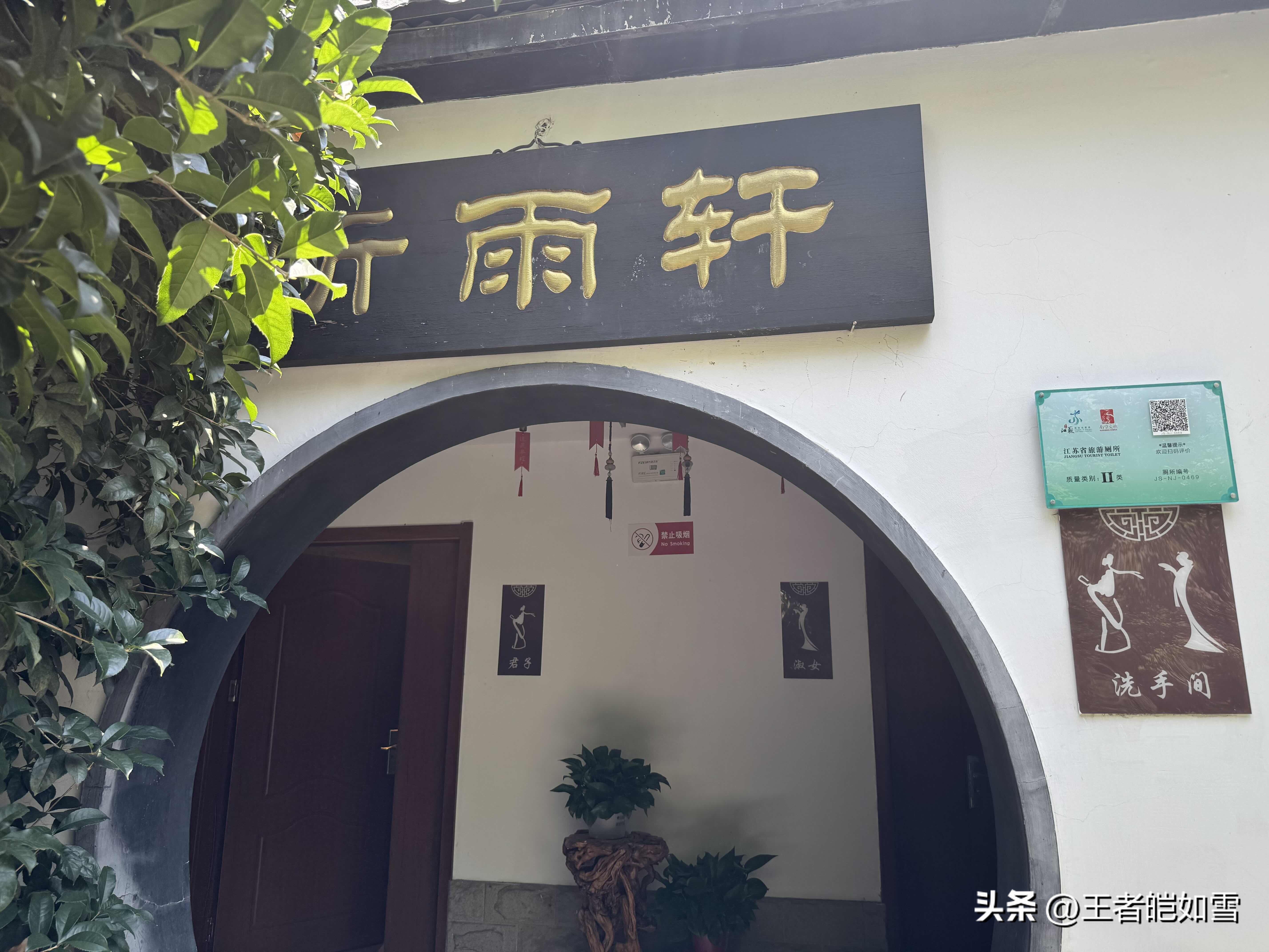 有意思的是,见到一处“听雨轩”,以为是个景点 。走近一看,原来是“洗手间”,左为“君子”,右为“淑女”。细想不禁哑然失笑,“听雨轩”,这名字极文雅极富想象力!(图9)