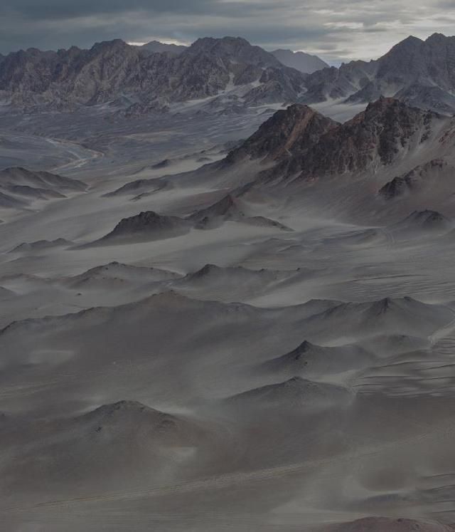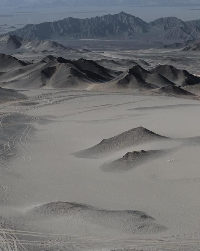 到了黑独山才知道,这里的美藏在极致的简约里。远处的山峰一座接一座连成片,没有常见山峦的青绿色,全是淡淡的墨黑色,表面干净得像被精心打理过,看不到一点多余的杂色。低头看脚下,浅灰色的砂石碎碎地铺着,从脚边一直延伸到山脚下,和墨黑色的山体慢慢衔接,连条明显的分界线都找不到,就像二者天生就长在一起。