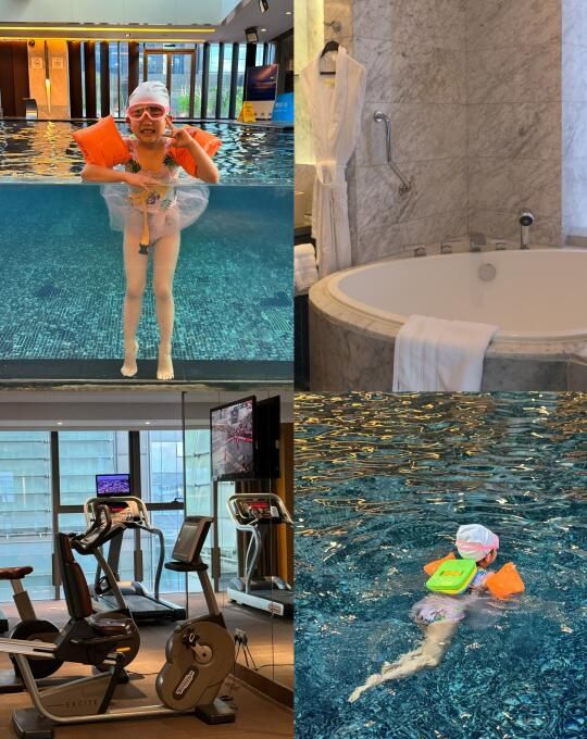 酒店自带透明无边泳池,体验了酒店专业教练的泳课教学,还有设施完善的健身房