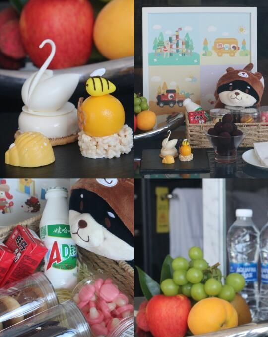 另外一些小细节也蛮值得加分的,欢迎水果/蛋糕/饼干/糖果,专为小朋友准备,好贴心洗手台有儿童爬梯浴缸配备了儿童泡澡玩具儿童拖鞋浴袍洗漱用品一应俱全