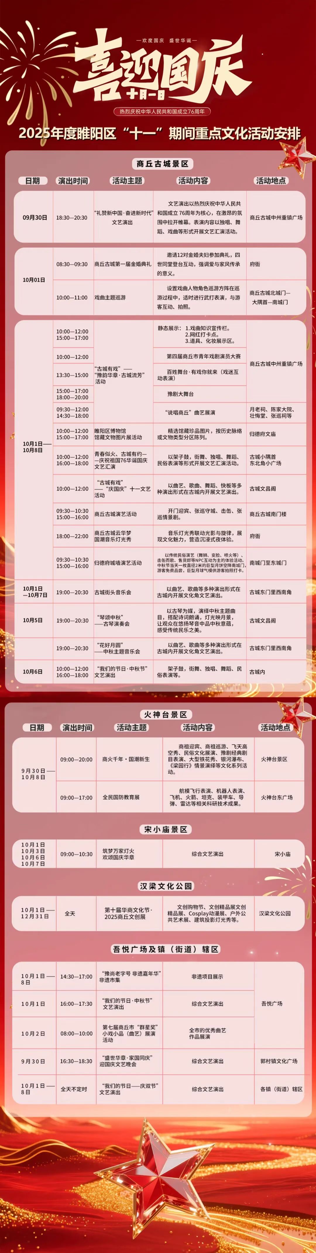 2025商丘古城十一国庆活动节目单