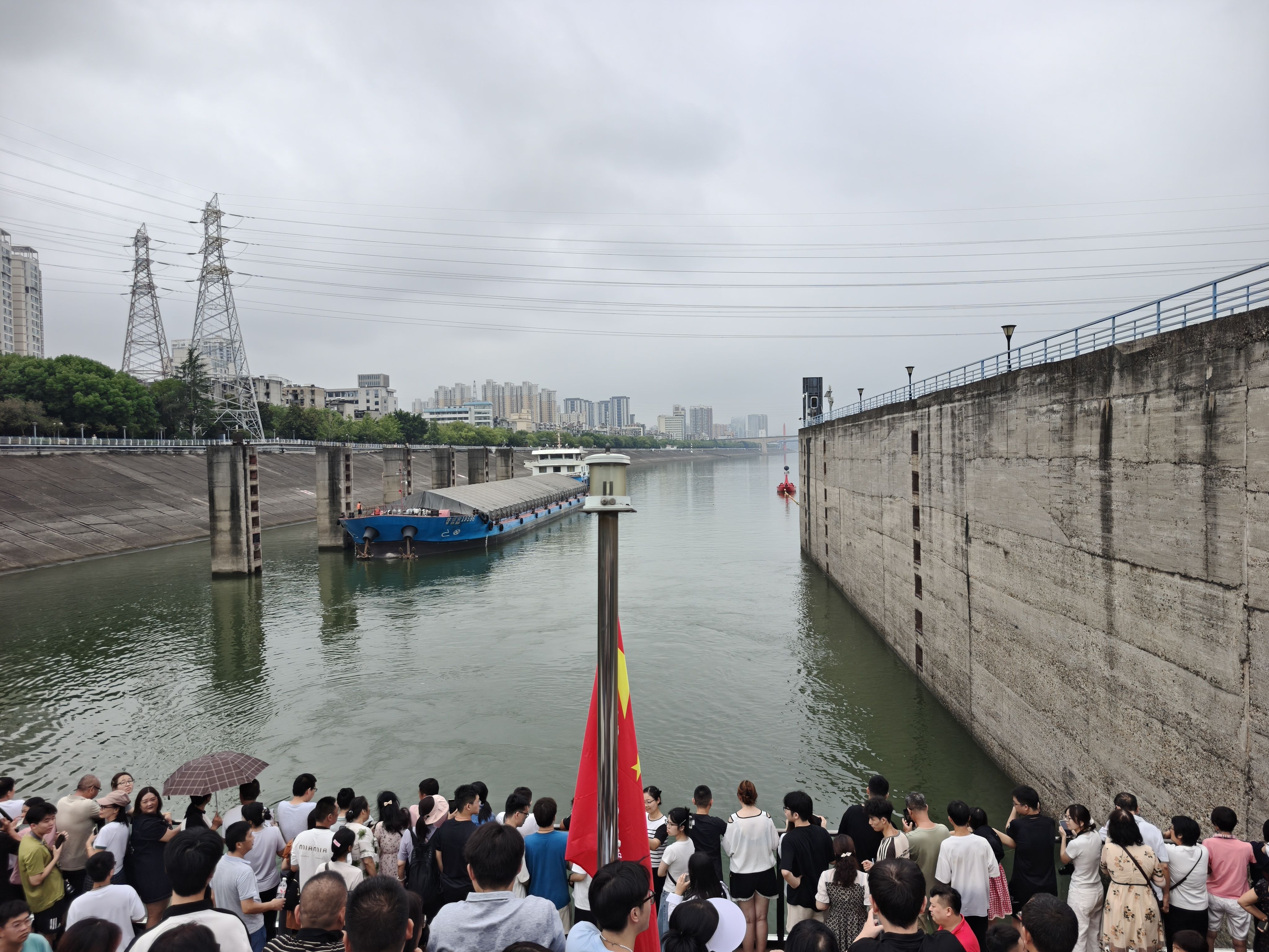 第一个精彩的阶段,是船进入船闸,并提升22米,进入西陵峡景区,亲身经历这个过程,还是挺震撼。